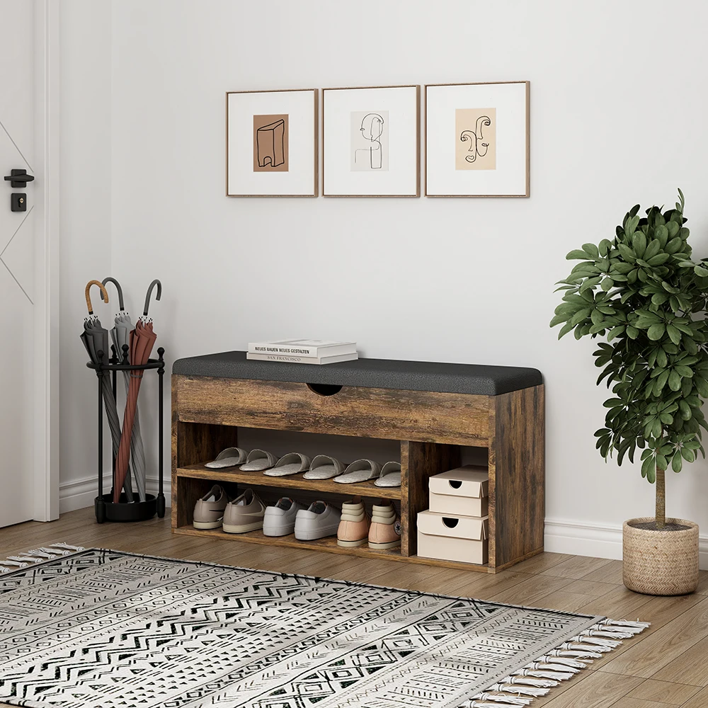 مقعد منظم لرف الأحذية للمدخل من AnneFish مكون من طبقتين مع درج ومقعد مبطن لمدخل غرفة النوم