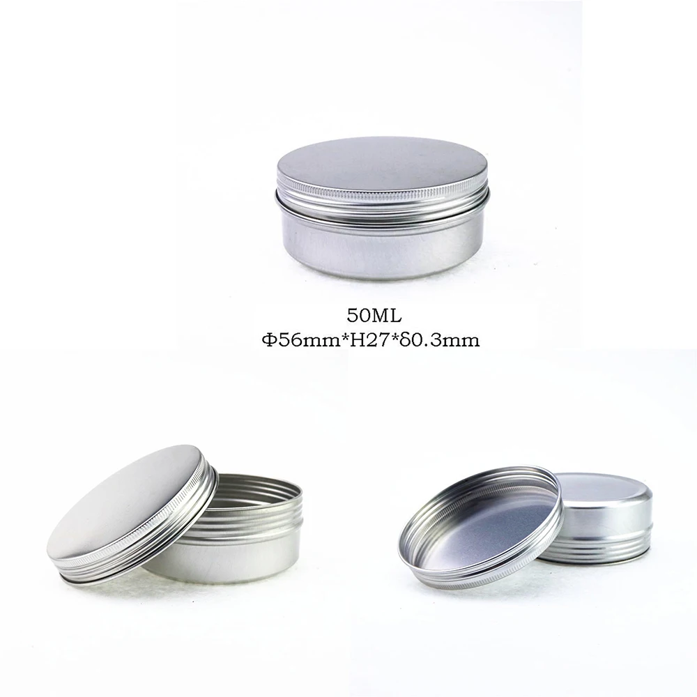 50 قطعة حاوية مستحضرات التجميل الألومنيوم شمعة جرة فارغة القصدير معدن الفضة مع الأغطية الشفاه بلسم وعاء المسمار كريم صندوق 10 جرام 15 جرام 30 جرام 50 جرام 60 جرام