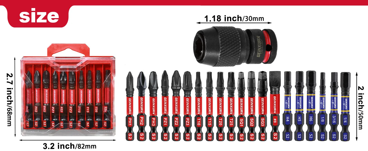 حوامل لقم مفك البراغي Geinxurn Impactحامل لقم مغناطيسي Imapct مقاس 1/4 بوصة إلى 1/4 بوصةتساعد منطقة الالتواء الممتدة على امتصاص عزم الدوران العالي لمح...