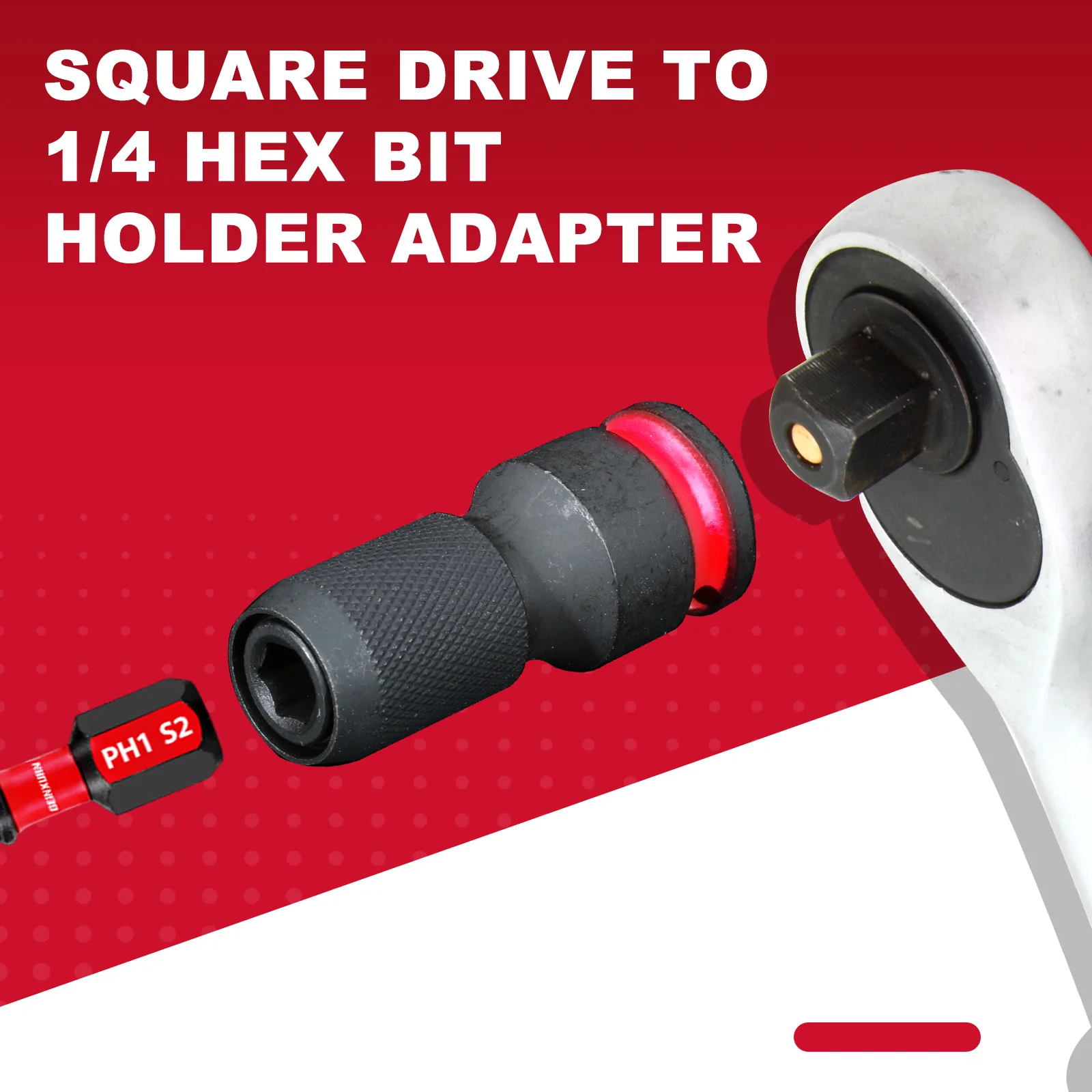 حامل لقم مفك براغي من Geinxurn، محرك مربع 1/4 بوصة إلى محول مقبس سداسي سريع الإصدار 1/4 بوصة مع لقم مفك براغي