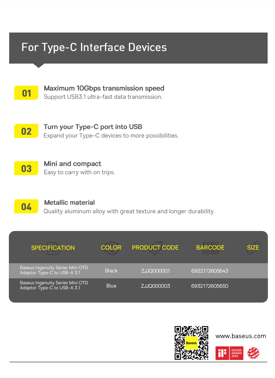 Baseus USB 3.1 OTG محول Type-C إلى USB-A USBC نوع C أنثى محول لماك بوك Xiaomi هواوي سامسونج 10Gbps البيانات OTG التكيف
