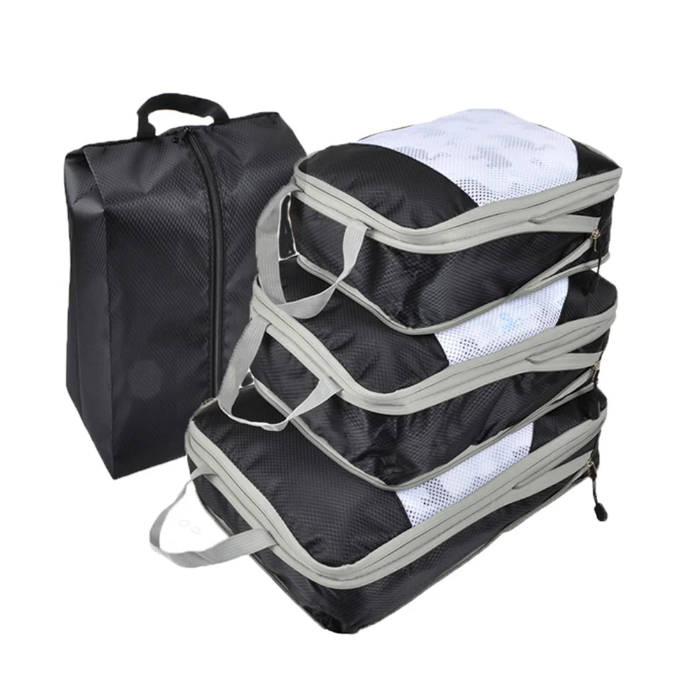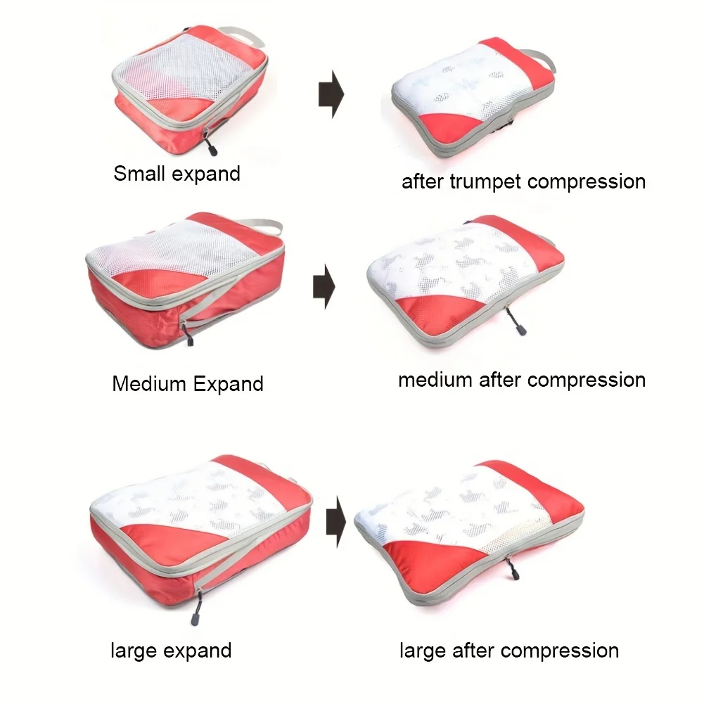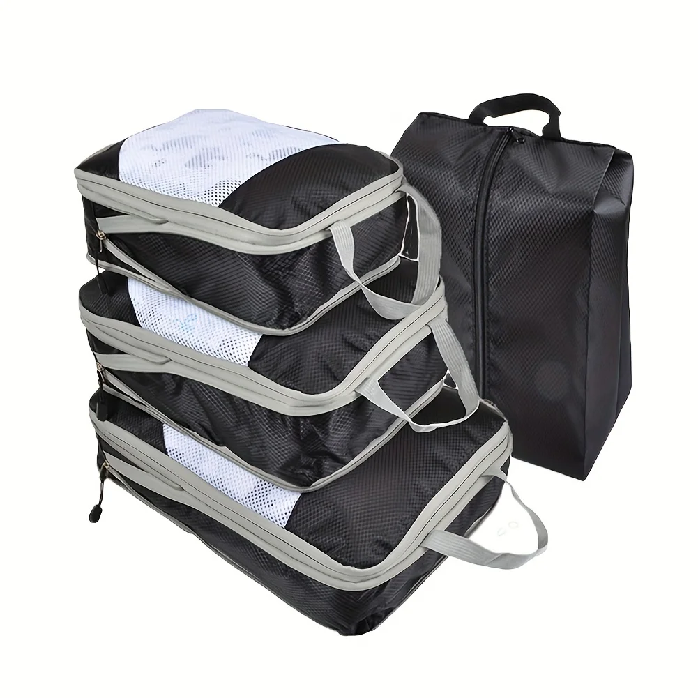 4 قطع من مكعبات تعبئة السفر، أكياس قابلة للطي وقابلة للضغط، ومنظمات قابلة للتوسيع