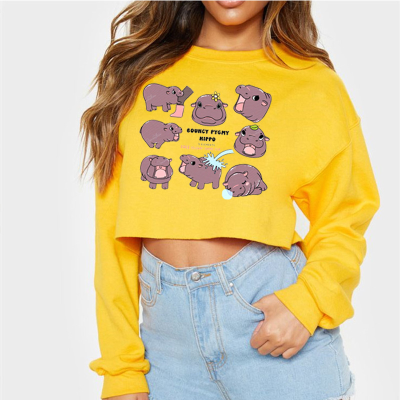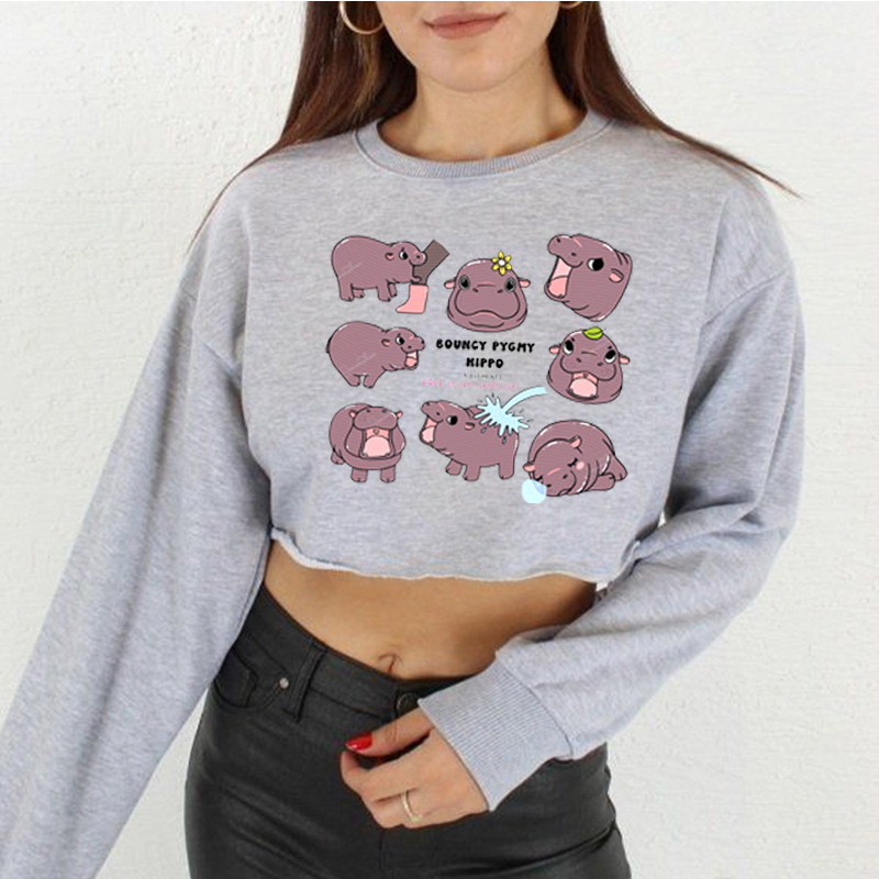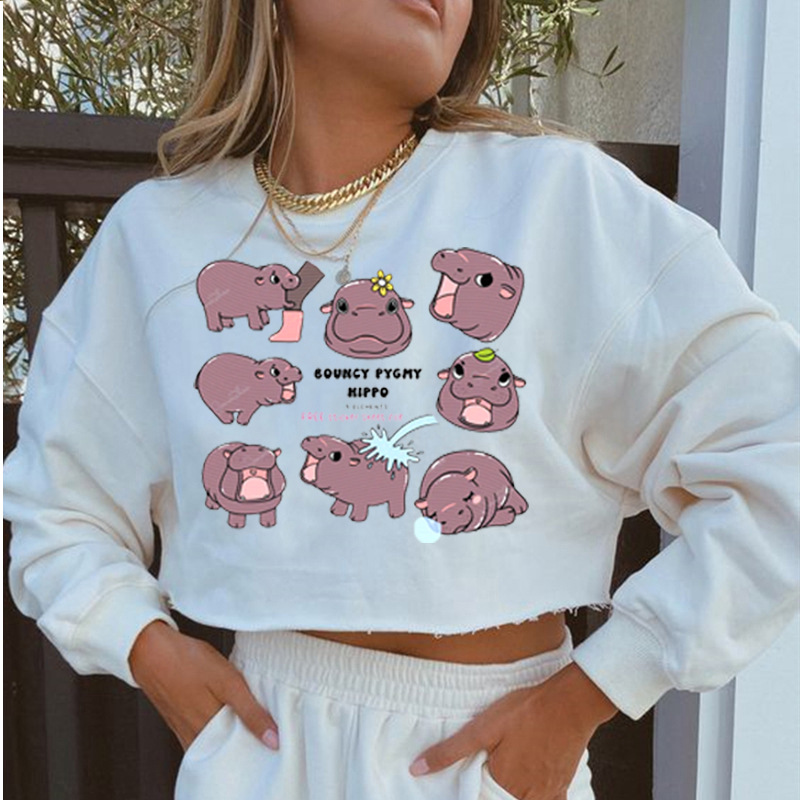 قميص بطن مطبوع بمظهر لطيف، أحب قمم مو دينغ العادية، عشاق الفيل النهري