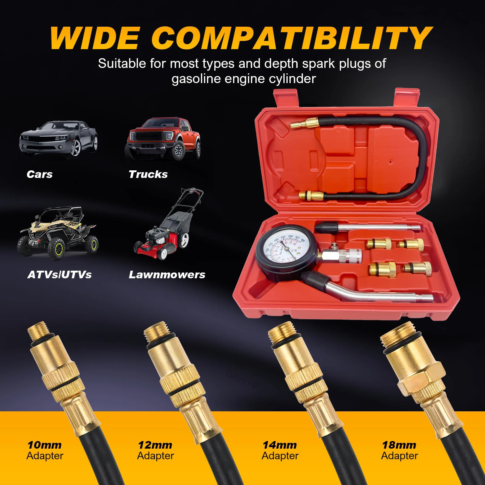 اختبار الضغط المتقدم: يشتمل على كل ما تحتاجه لاختبار ضغط الضغط السريع والفعال لأسطوانات محرك البنزين والغاز والوقود لمعظم أنواع شمعات الإشعال في السيا...