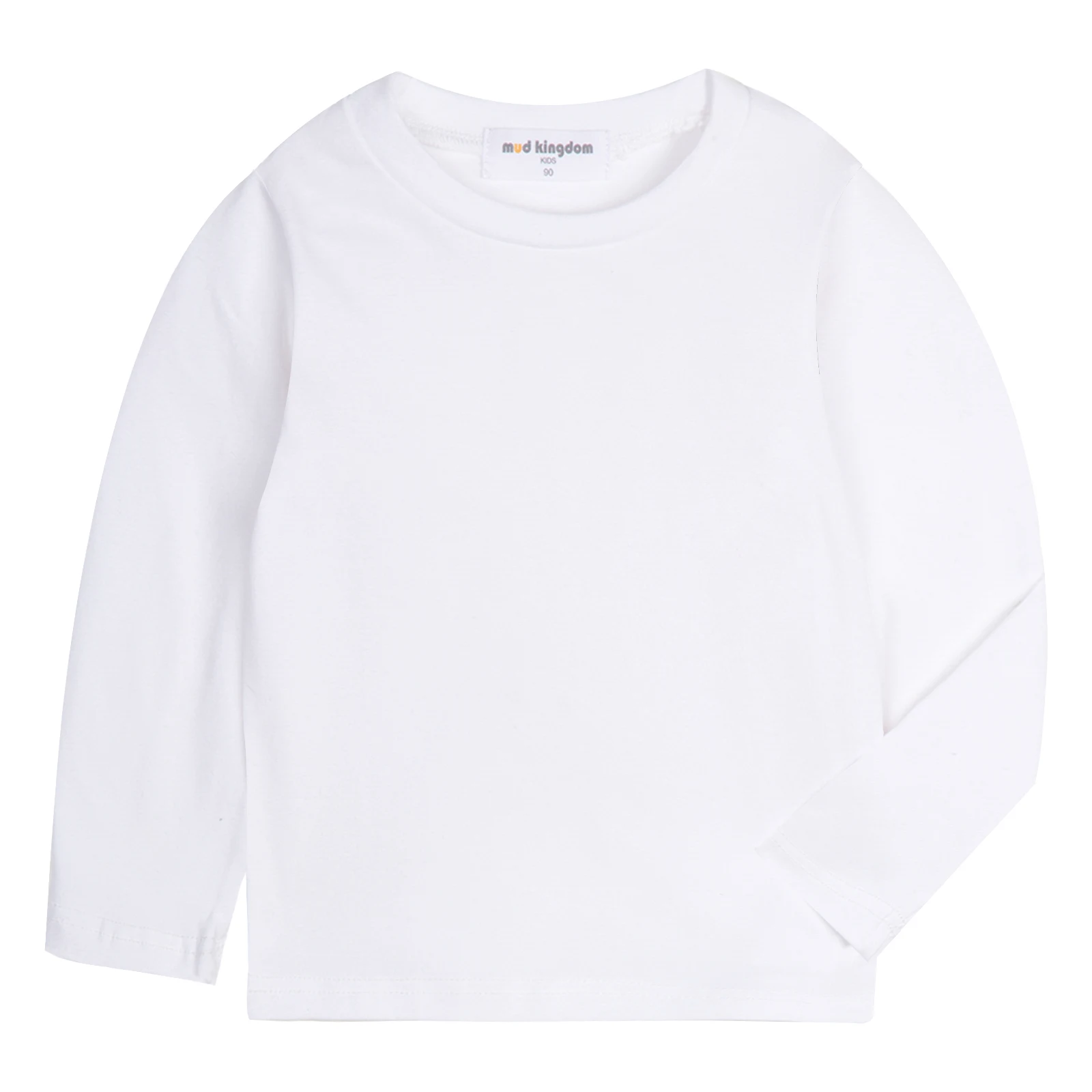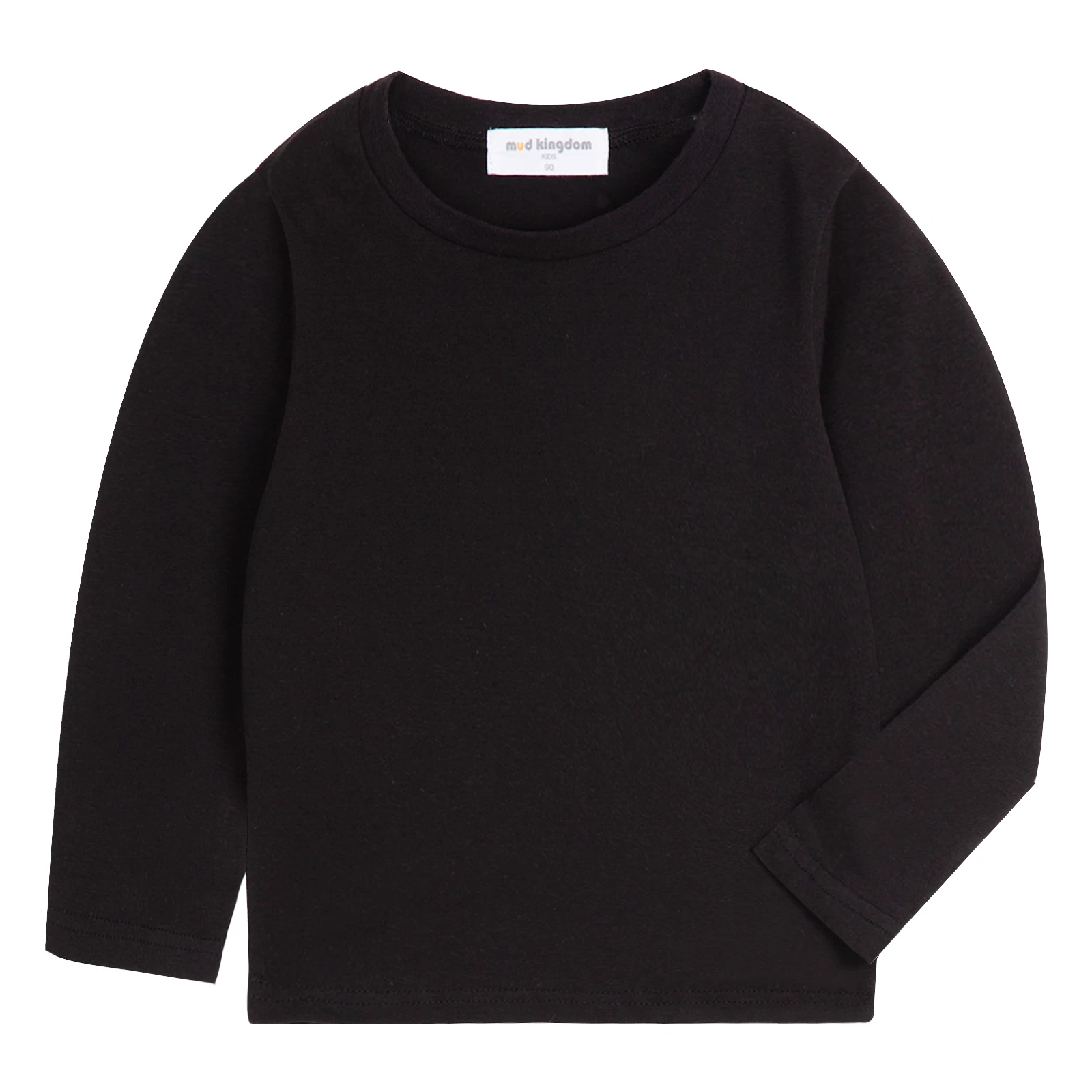 Muduk-ملابس علوية سادة من القطن بأكمام طويلة للأطفال ، تيشيرتات كبيرة للأولاد والبنات ، تي شيرت ناعم متين ، تي شيرت أبيض وأسود ، ملابس Crewneck
