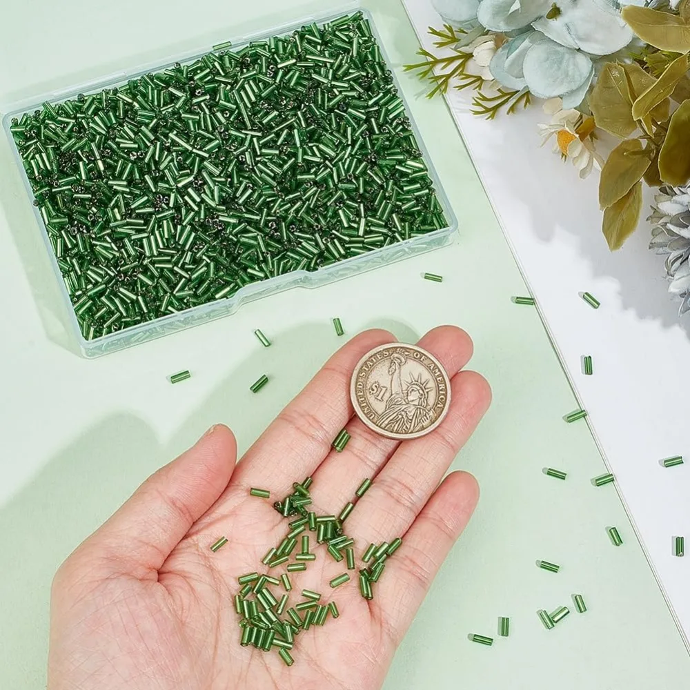 100 جرام الزجاج الأخضر بوق الخرز السائبة أنبوب البذور حبة صغيرة مبهمة مستديرة أنابيب طويلة فاصل فضفاض الحرفية الخرز لصنع سوار عدة