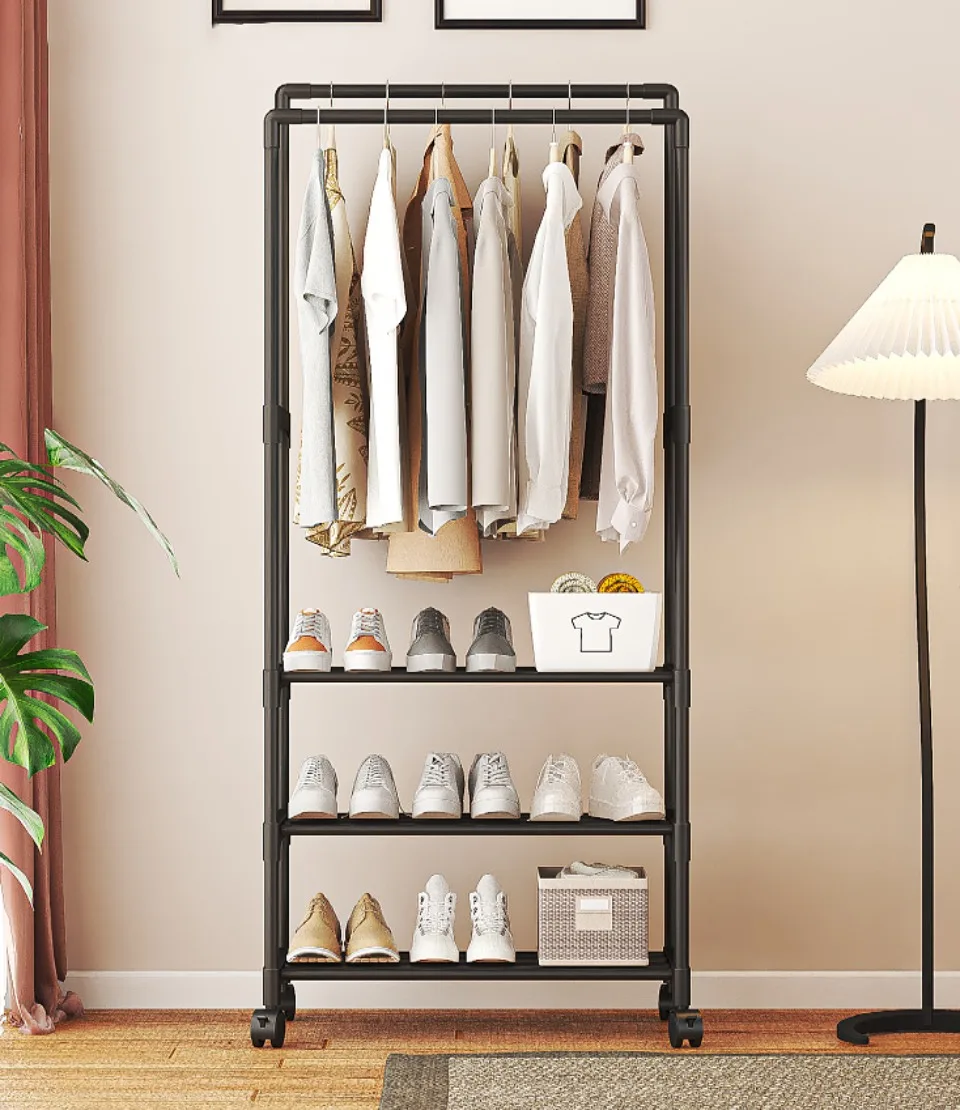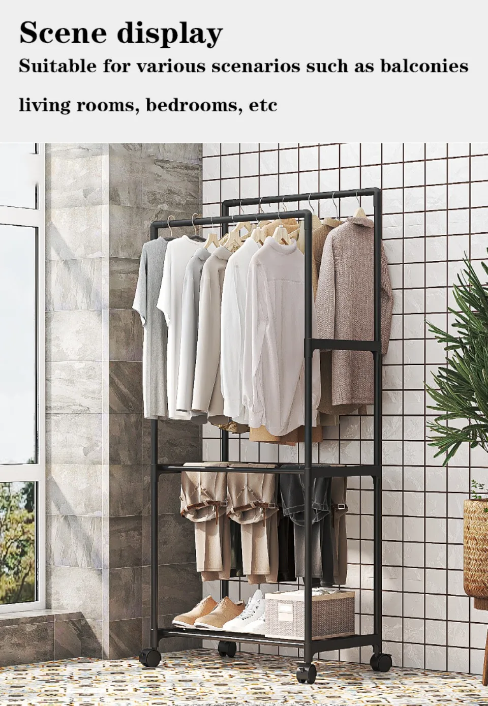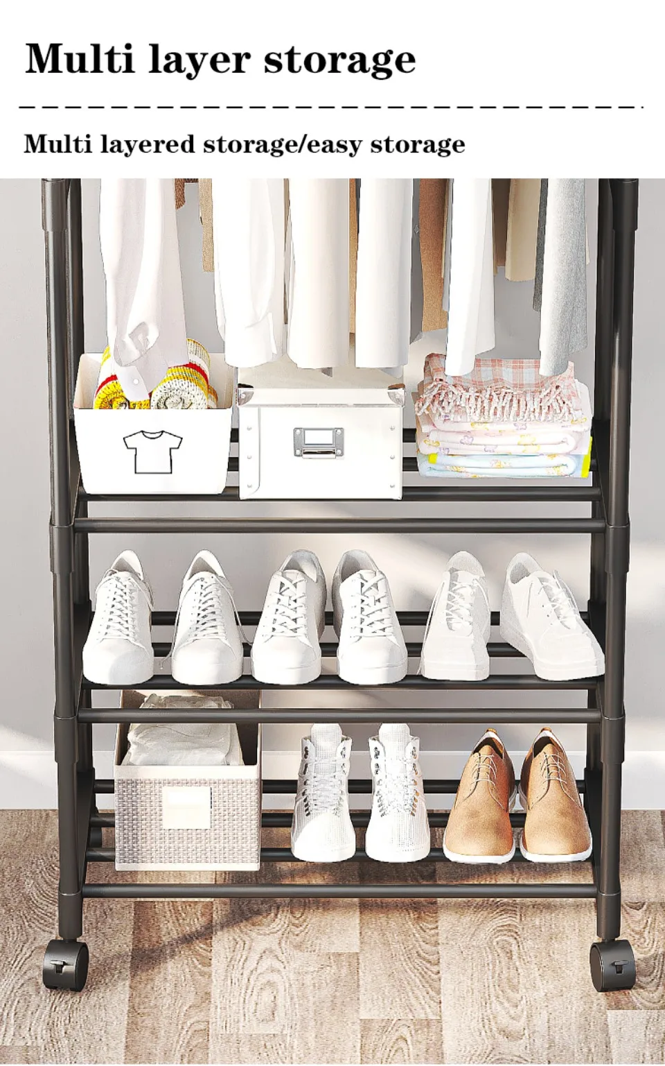 رف المعطف مزدوج القطب متعدد الطبقات تخزين سهل التركيب أثاث القاعة رفوف تخزين غرفة النوم الأحذية ورف المعطف للمدخل