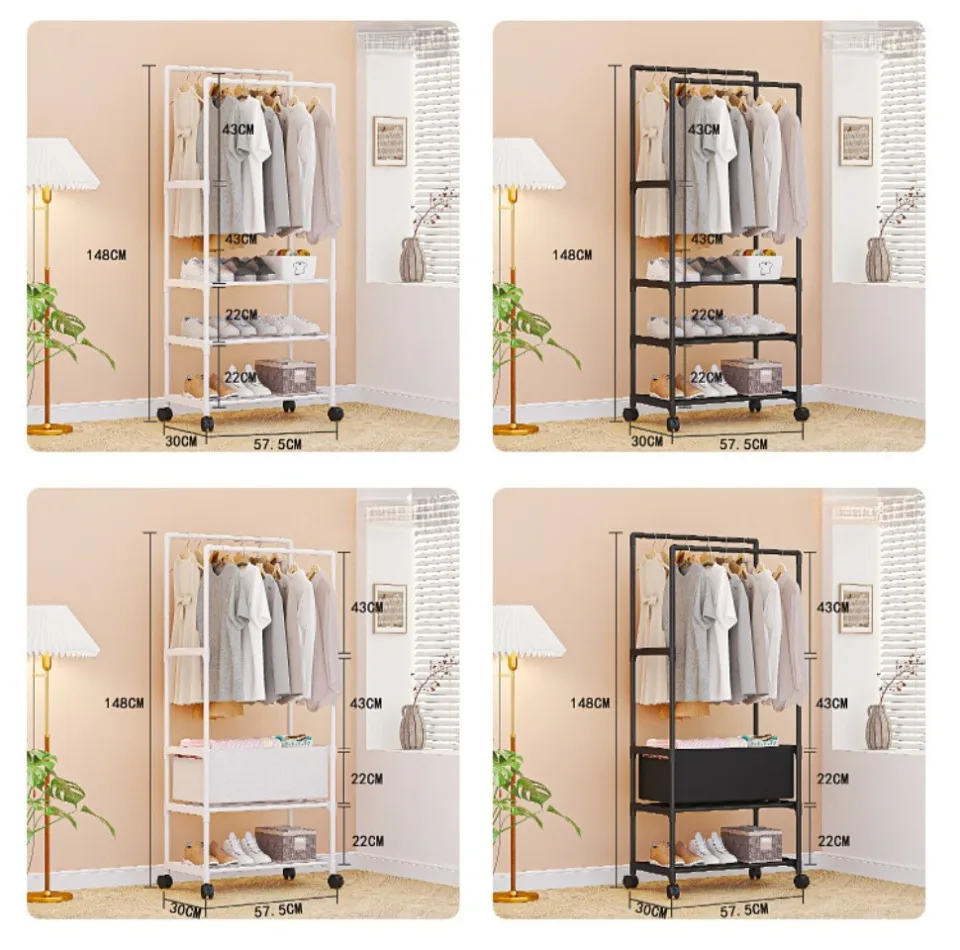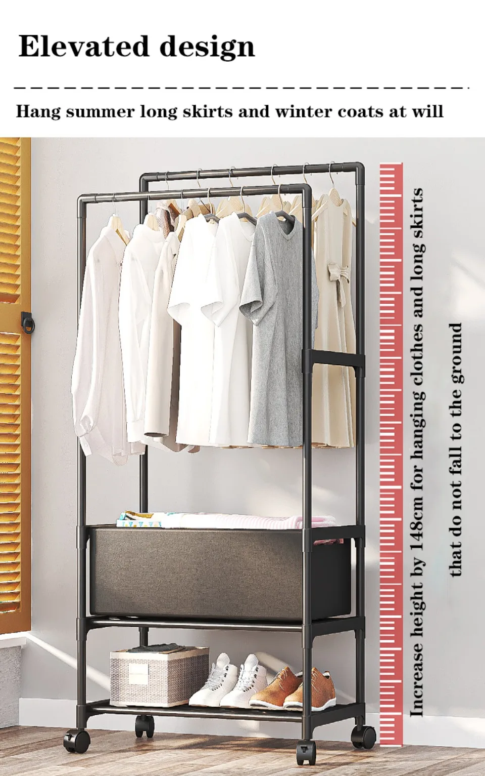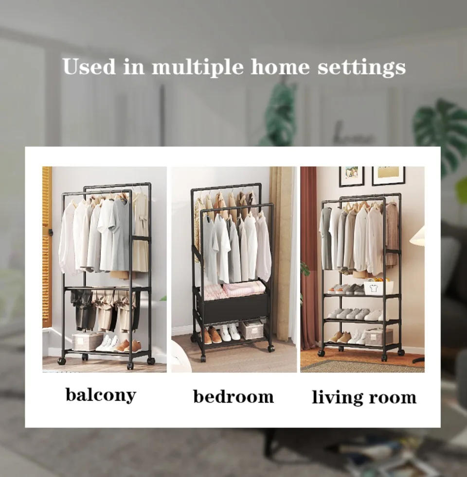 رف المعطف مزدوج القطب متعدد الطبقات تخزين سهل التركيب أثاث القاعة رفوف تخزين غرفة النوم الأحذية ورف المعطف للمدخل