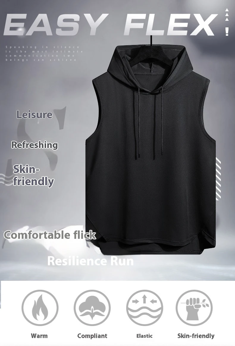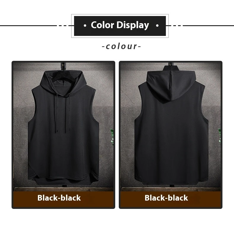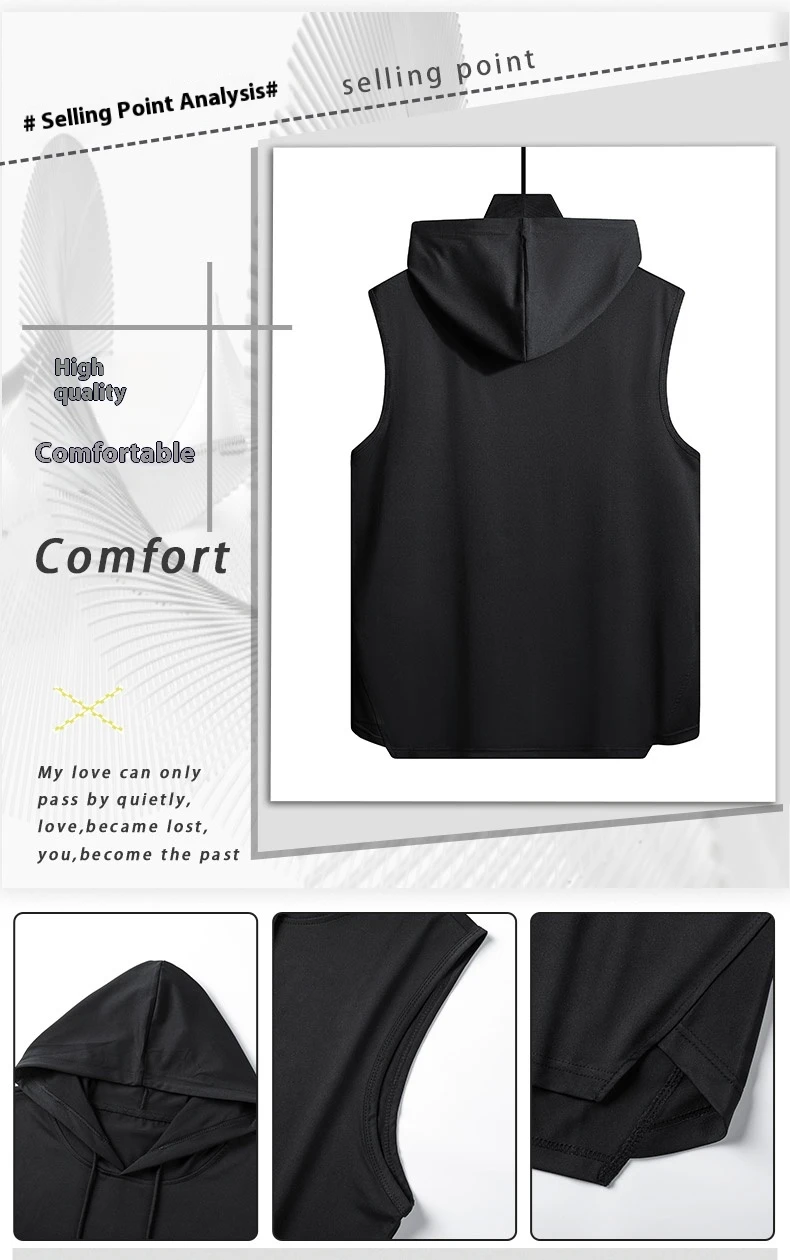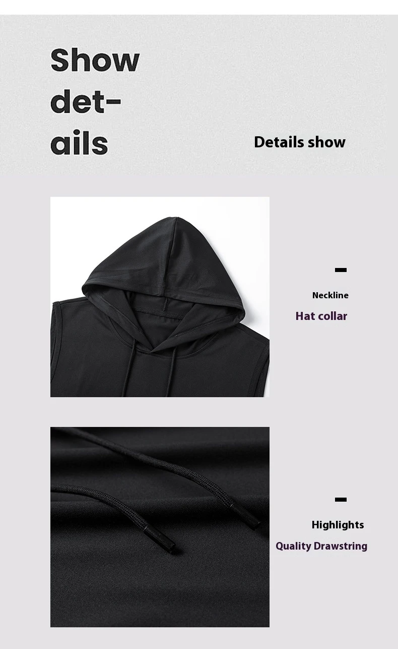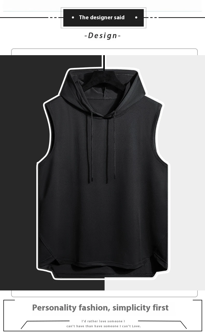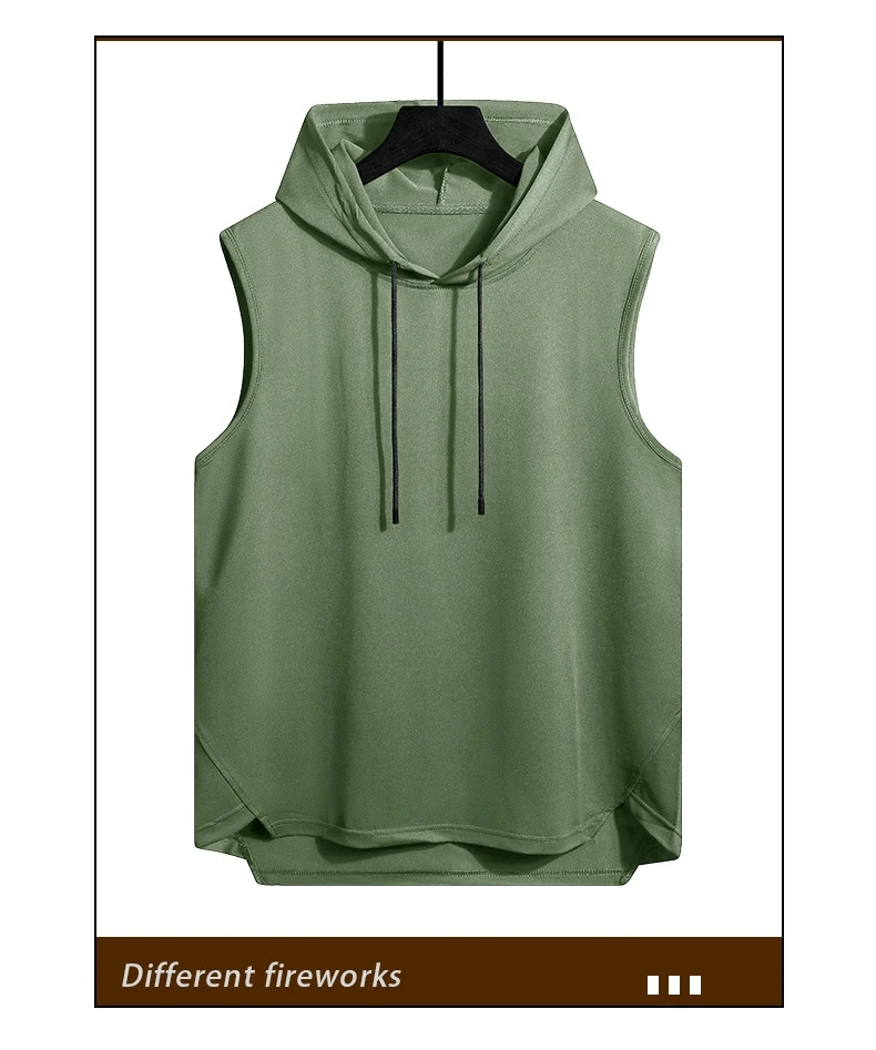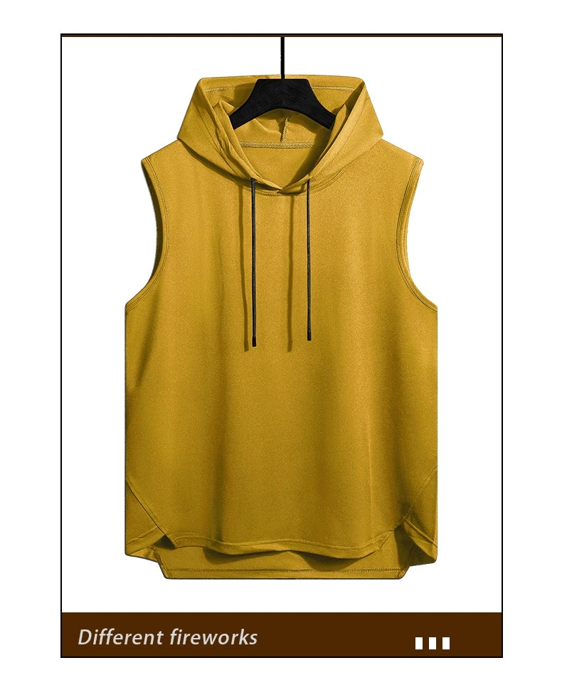 الرجال الصيف هوديي سترة رياضية بلا أكمام بلون بسيط أزياء في الهواء الطلق تشغيل تسلق قميص العصرية تي شيرت