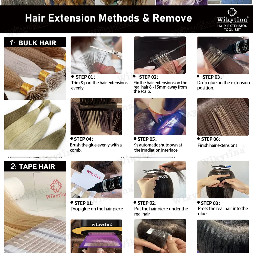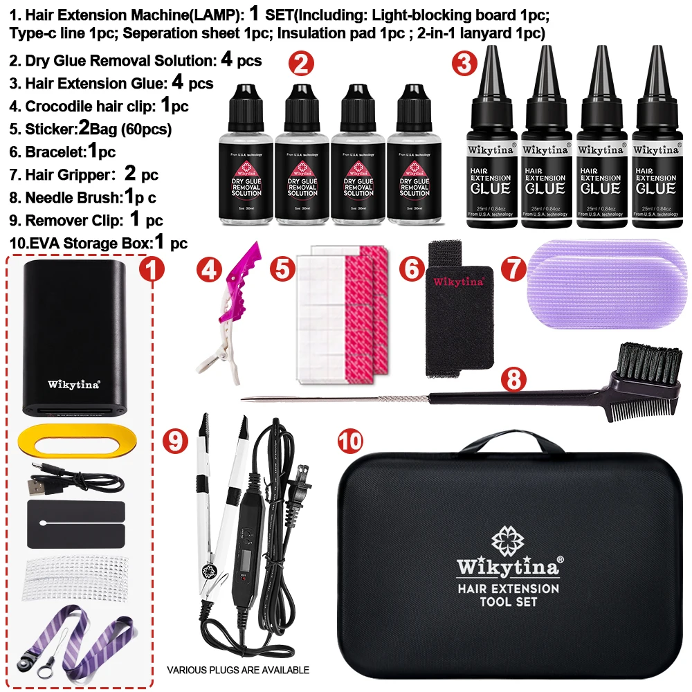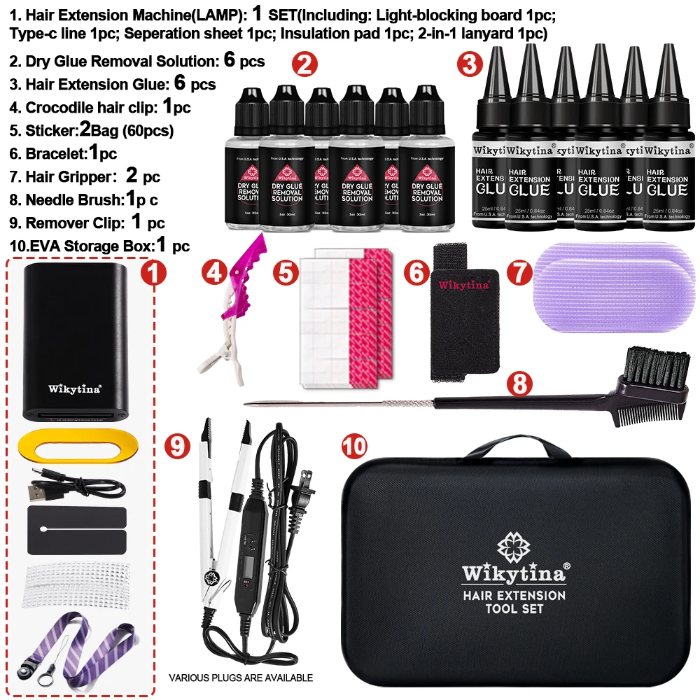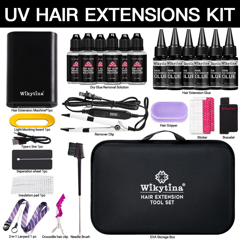 طقم وصلات شعر بالأشعة فوق البنفسجية 2025 مع أدوات إضاءة على شكل حرف V ولاعة معالجة لوصلات الشعر الاحترافية في المنزل أو الصالون