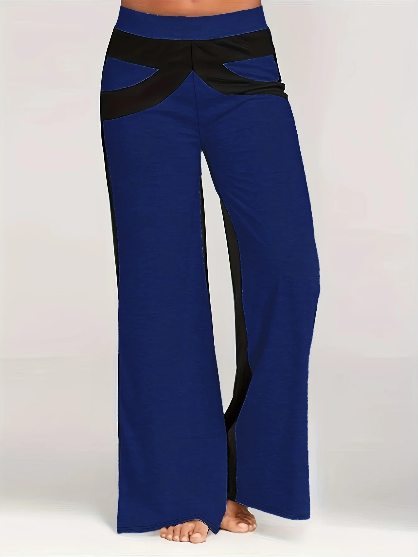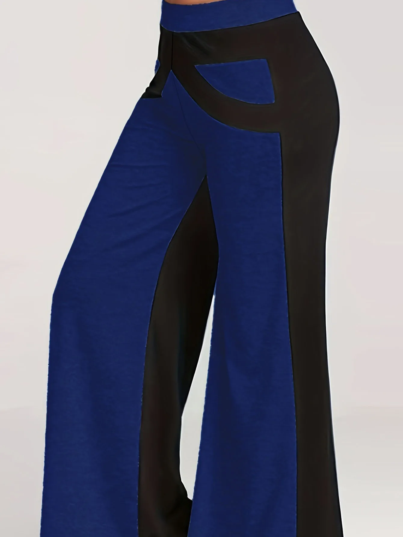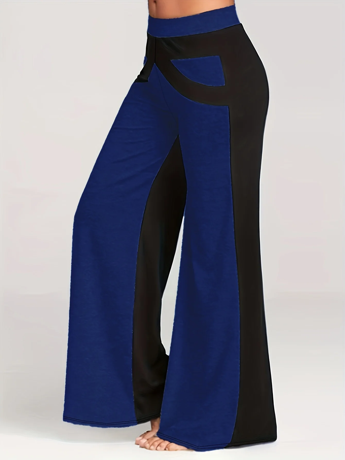 بنطلون نسائي مرن مرتفع واسع الساق ، بنطلون كاجوال مقاس كبير ، Colorblock