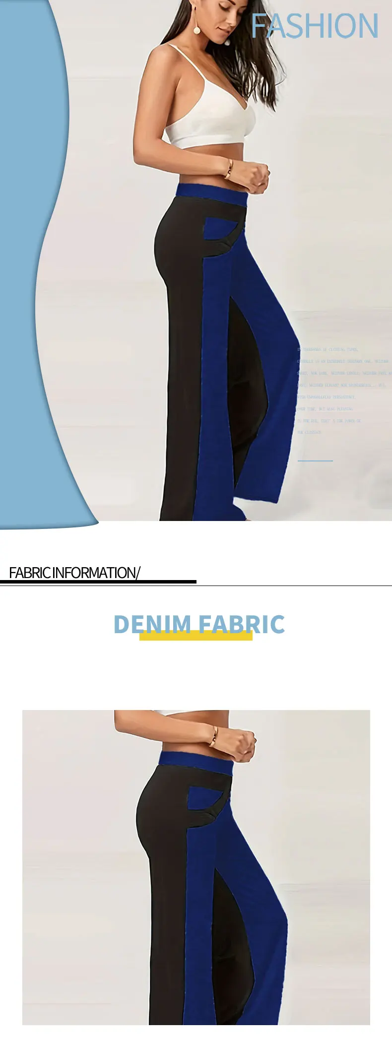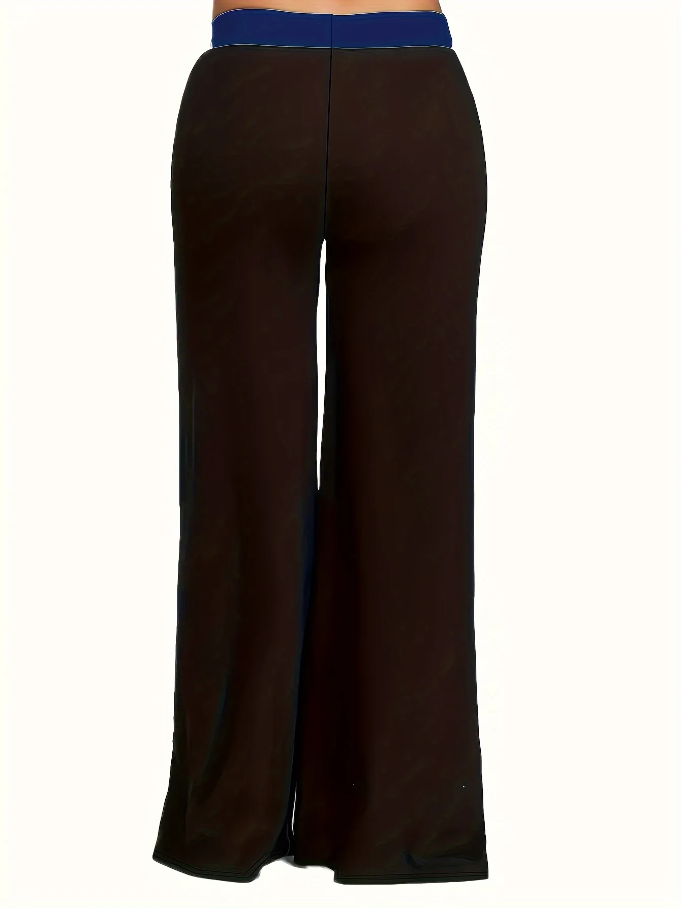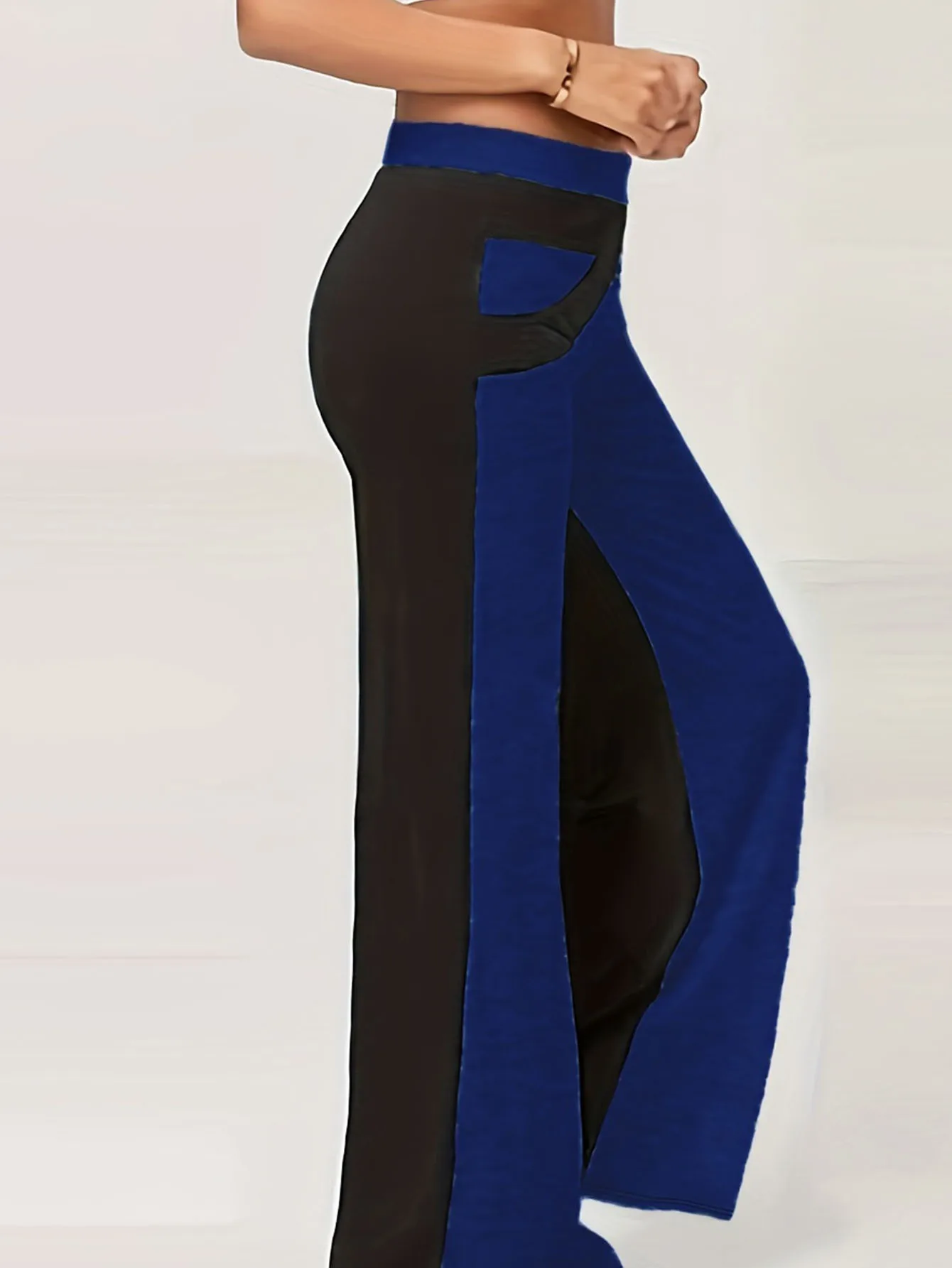 بنطلون نسائي مرن مرتفع واسع الساق ، بنطلون كاجوال مقاس كبير ، Colorblock
