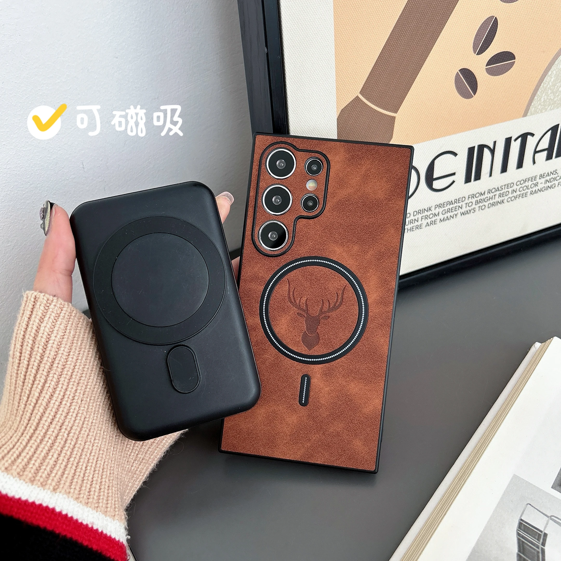 حافظة لهاتف سامسونج جالاكسي S24 S23 S22 S21 Plus Ultra لهاتف Magsafe المغناطيسي اللاسلكي للشحن الغطاء الخلفي