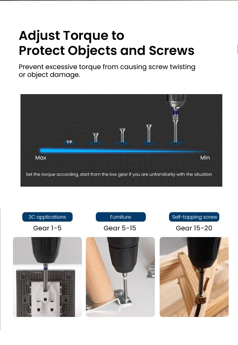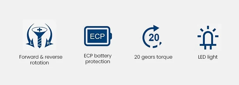 الوظيفة:الدوران الأمامي والخلفي: يسمح لك بالاختيار بين الدوران في الاتجاه الأمامي أو الخلفي.تعديل عزم الدوران بـ 20 مستوى: مجهز بـ 20 إعدادًا لعزم الد...