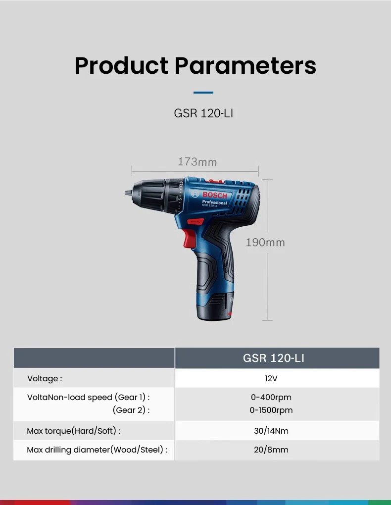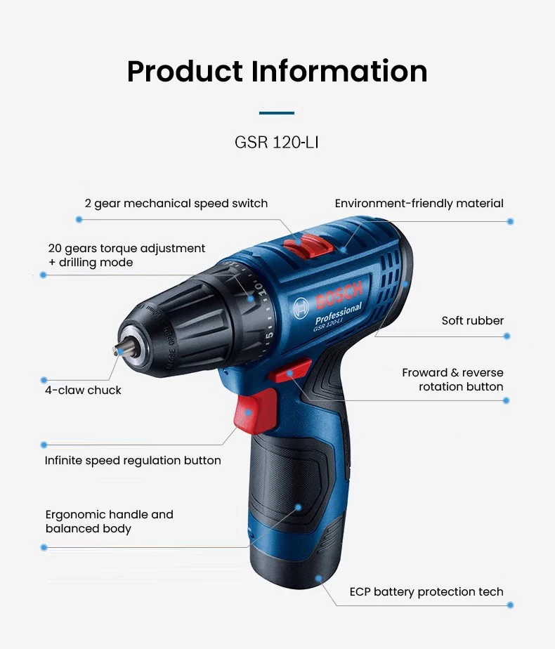 بوش GSR 120 Li مثقاب كهربائي 12 فولت مفك براغي لاسلكي قابل لإعادة الشحن تأثير الحفار سائق أدوات كهربائية بوش المهنية
