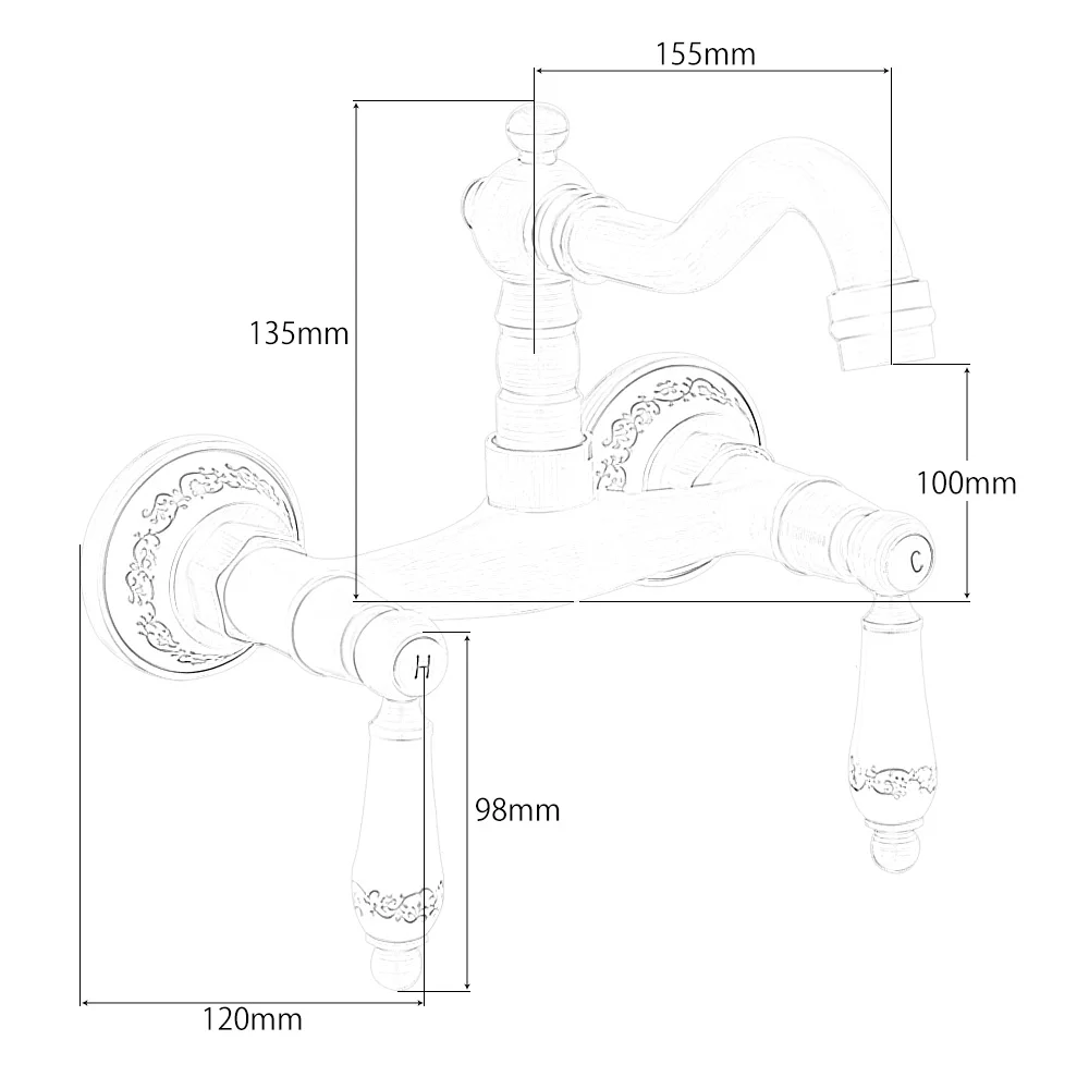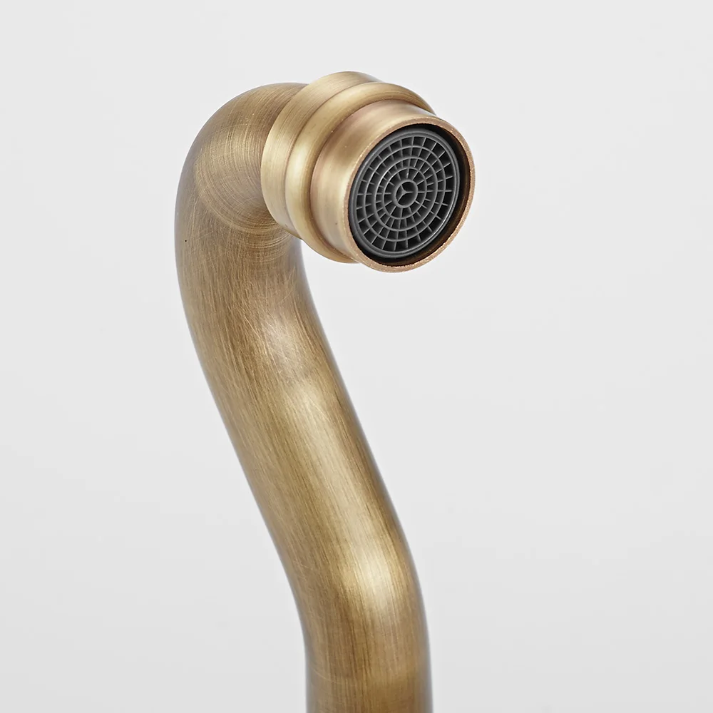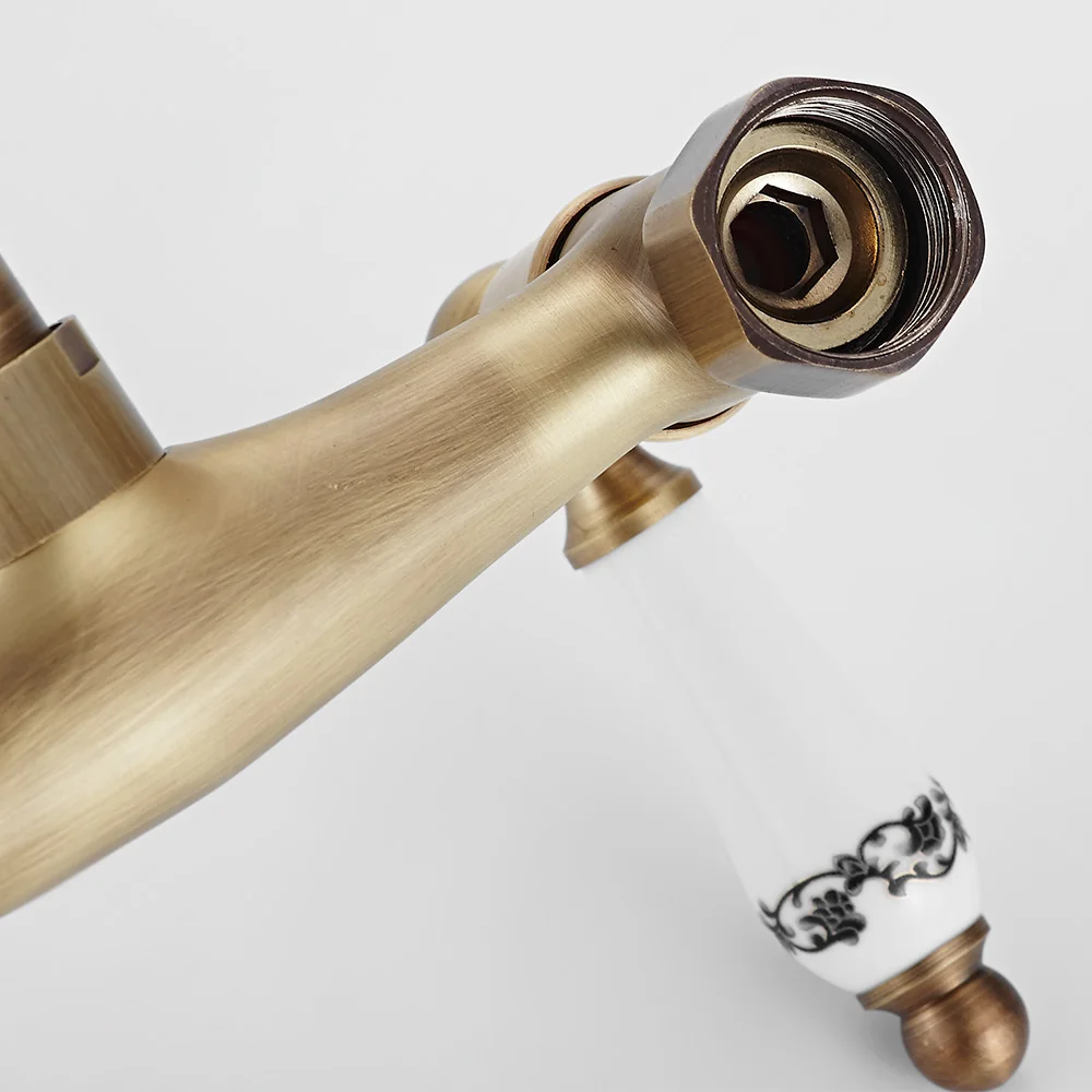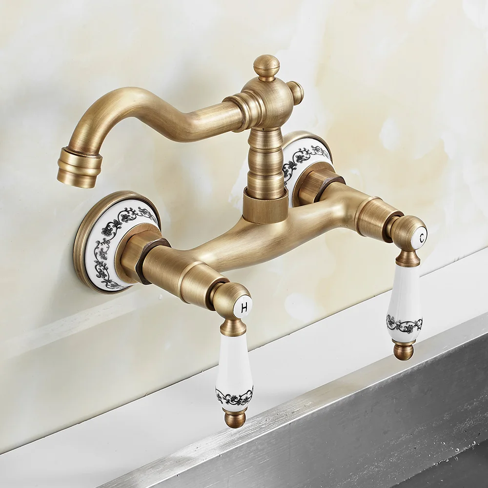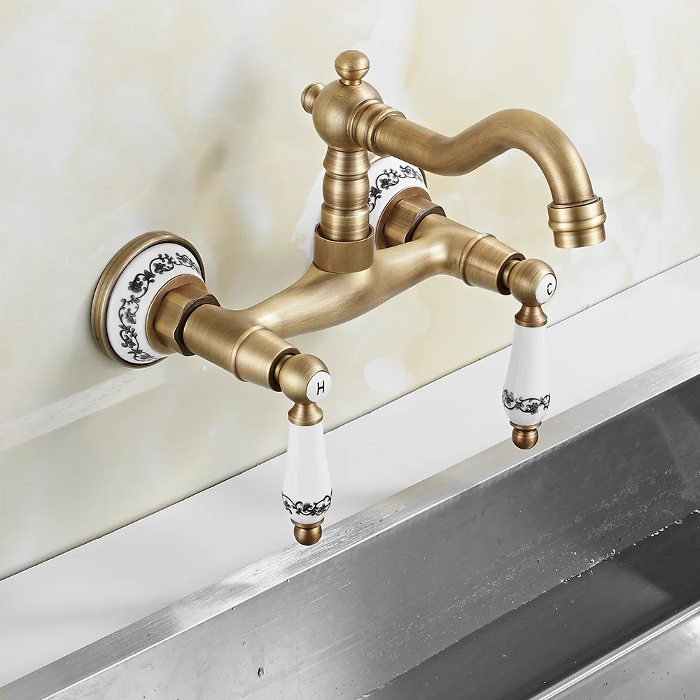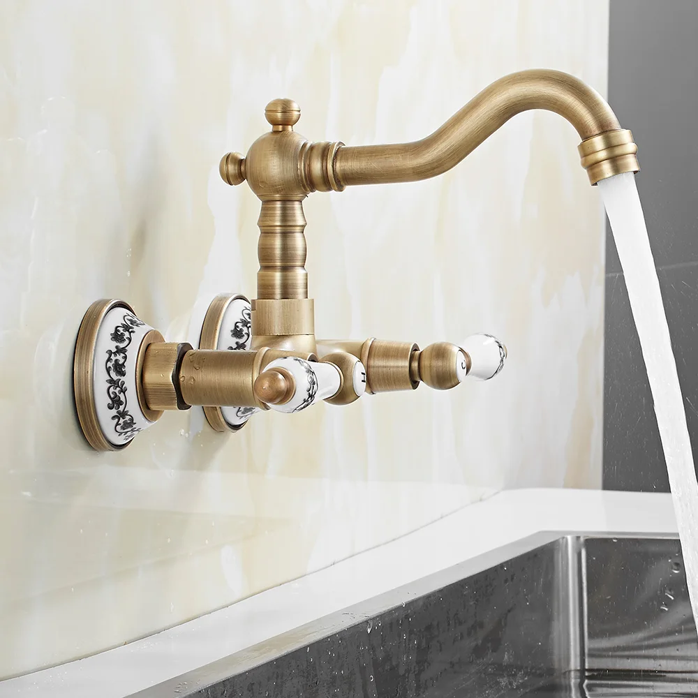 صنبور نحاسي عتيق للمطبخ ، مثبت على الحائط ، صنبور مياه باردة وساخنة مزدوج ، يدور 360 درجة