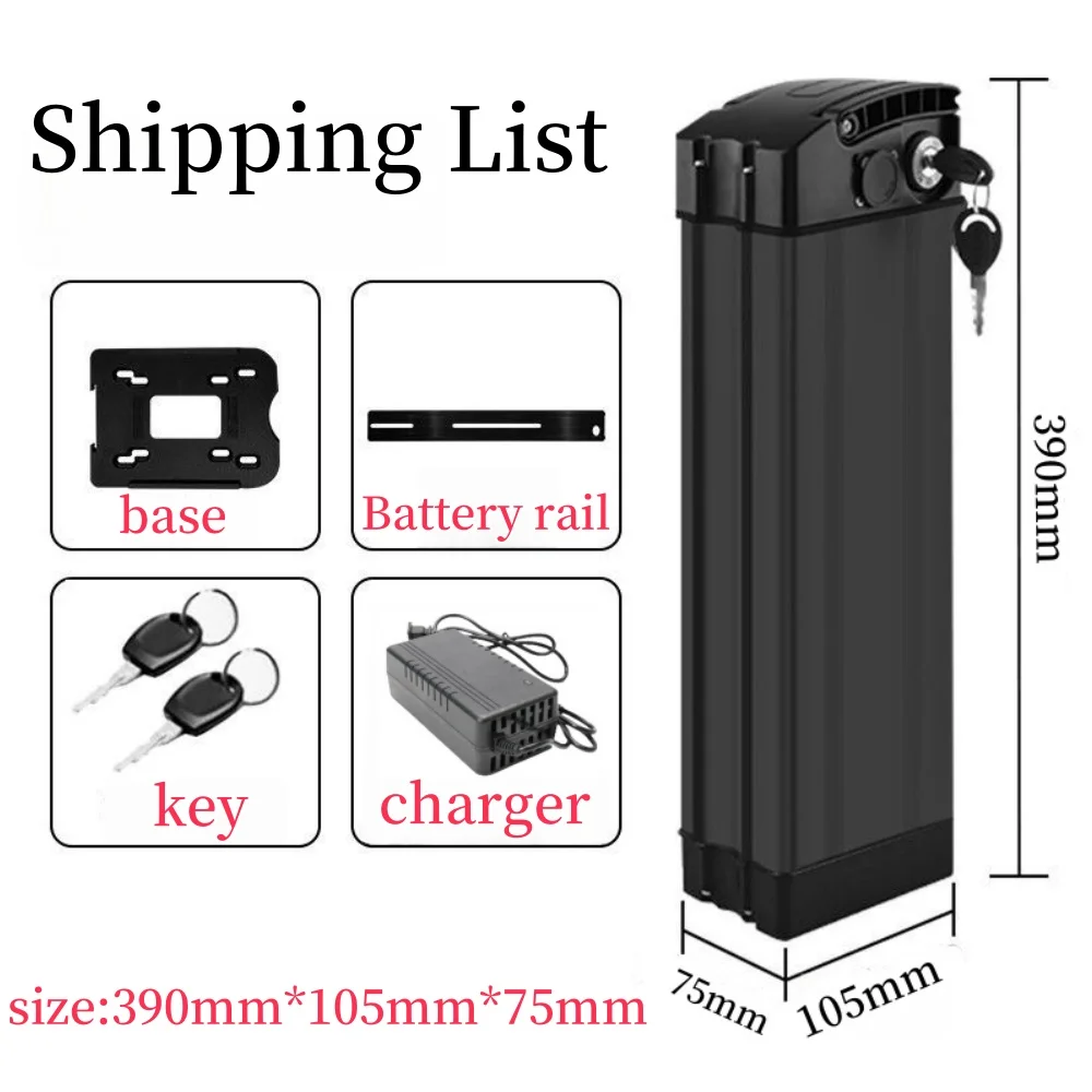 بطارية ليثيوم 36 فولت، مناسبة للأسماك الفضية، هيكل من الألومنيوم، مع قفل مضاد للسرقة.