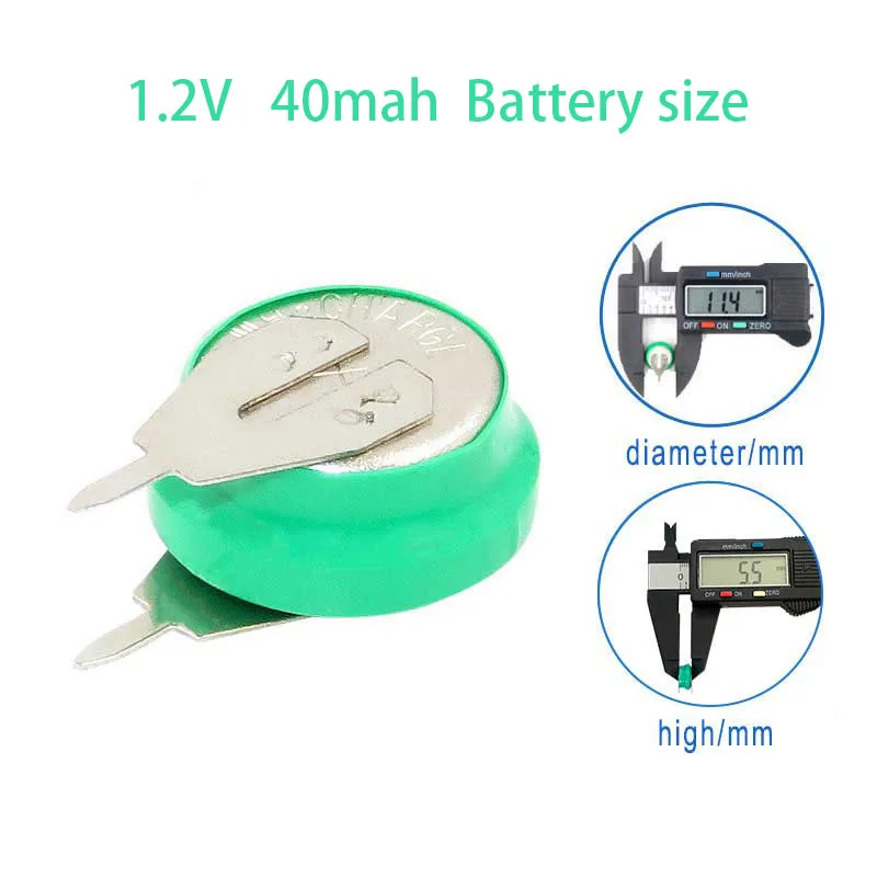 10-100 قطعة 1.2 فولت 40 مللي أمبير ni-mh بطارية قابلة للشحن زر عملة خلية مع دبابيس لحام لعبة الموقت الطاقة الشمسية الكهربائية