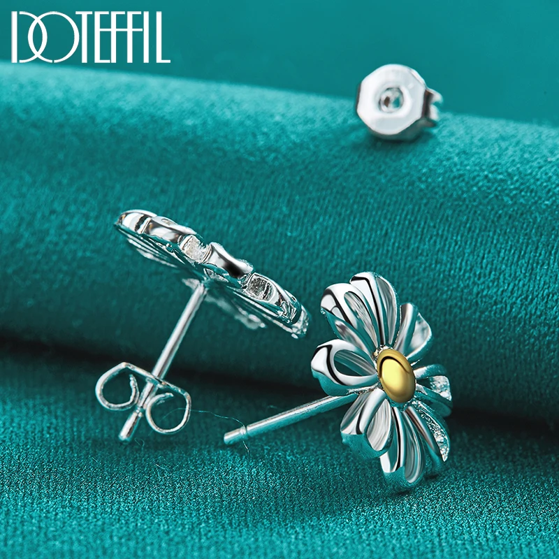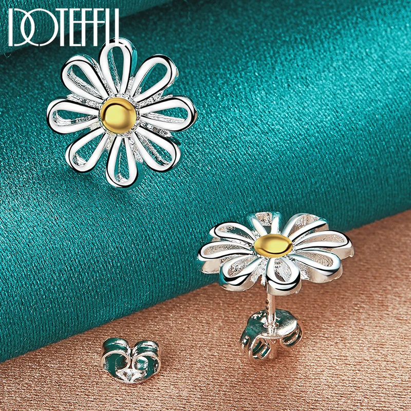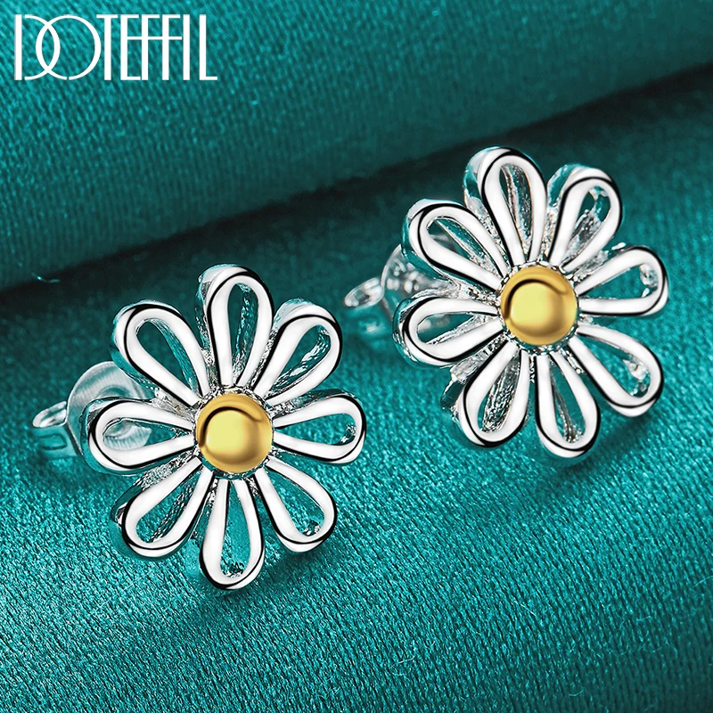 أقراط مرصعة بالزهور الذهبية للنساء ، فضة إسترليني ، هدية للسيدات ، سحر الموضة ، مجوهرات الزفاف ، جودة عالية