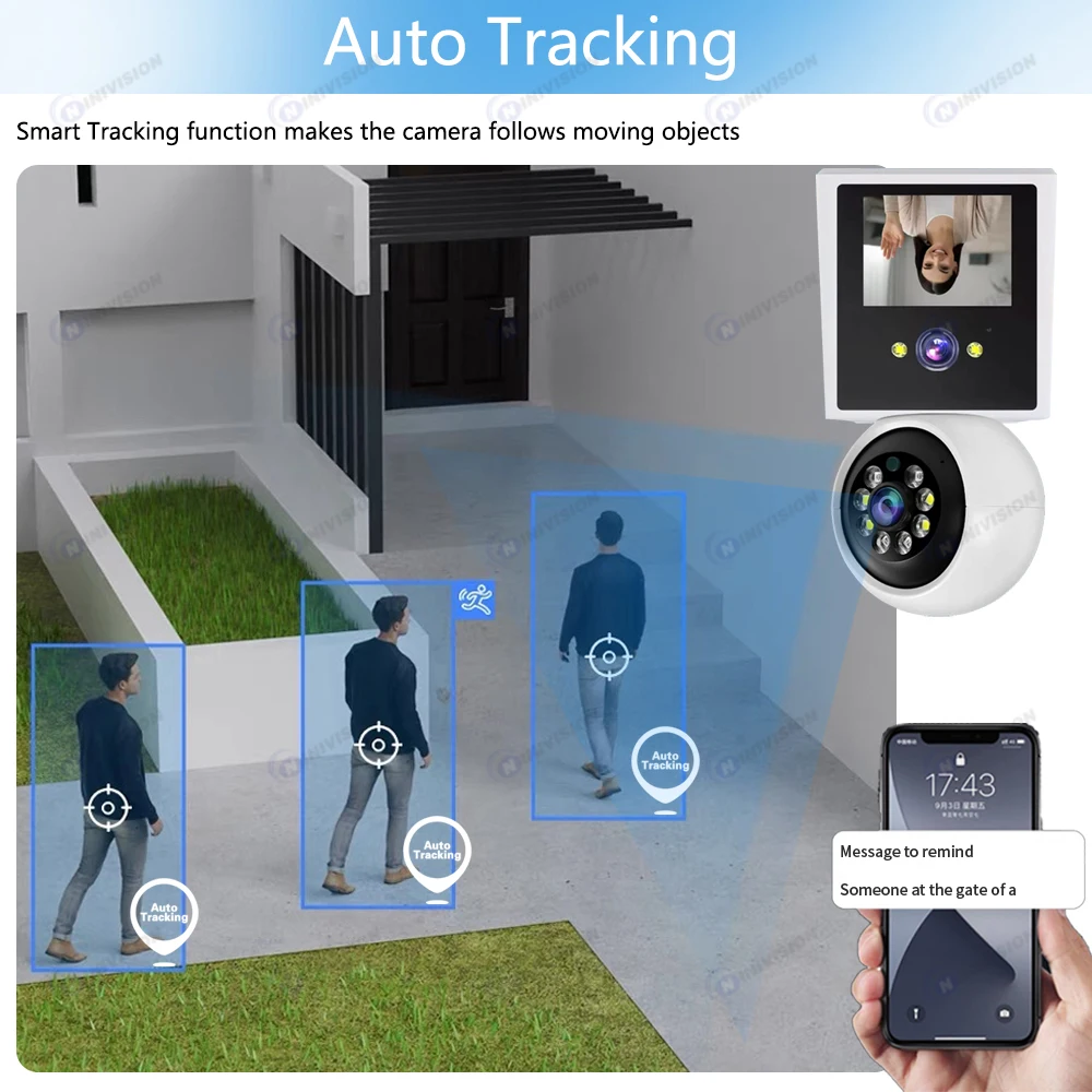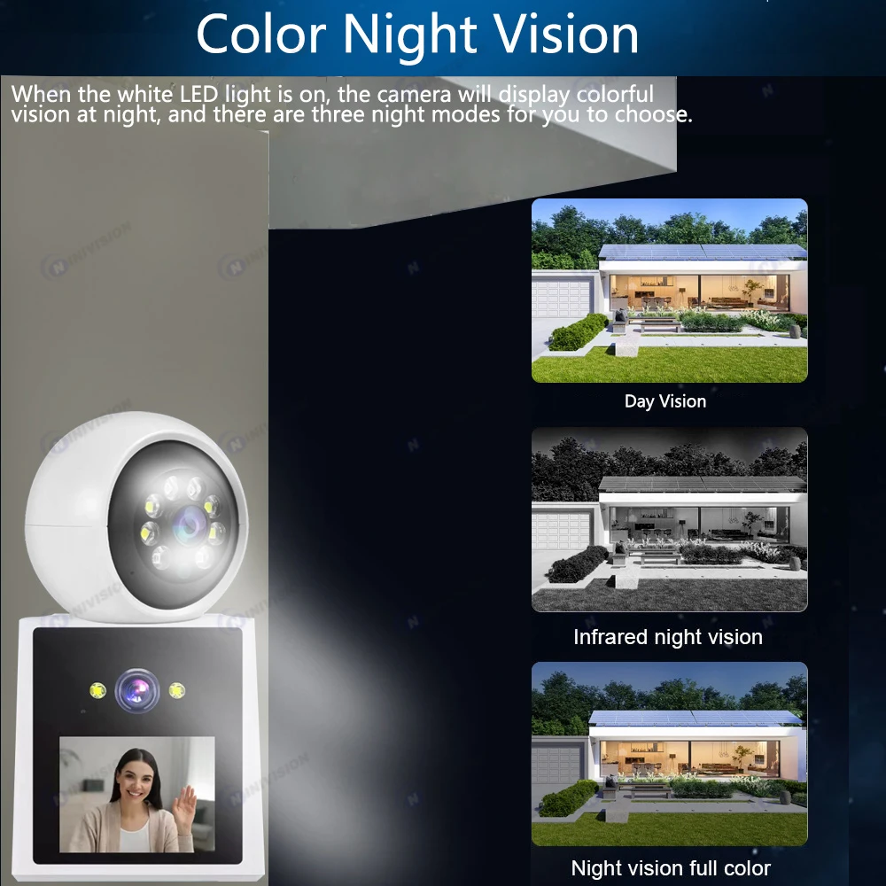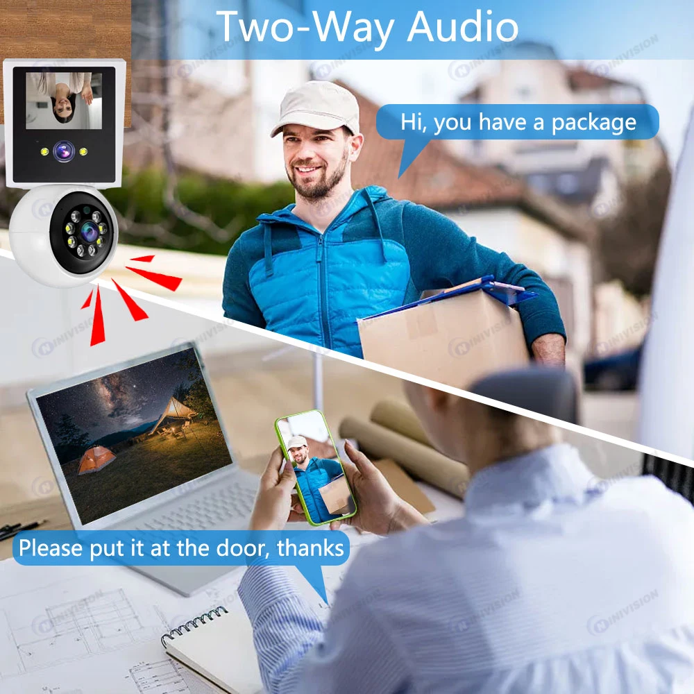 4K 8MP عدسة مزدوجة 2.4 بوصة واي فاي مكالمة فيديو كاميرا مراقبة الطفل الصوت كاميرا مراقبة للمنزل المنزل الذكي داخلي O-Kam اللاسلكية PTZ