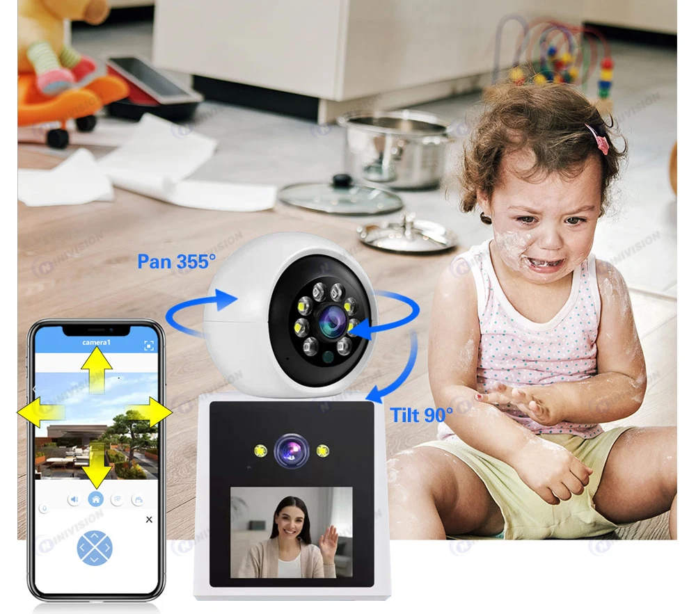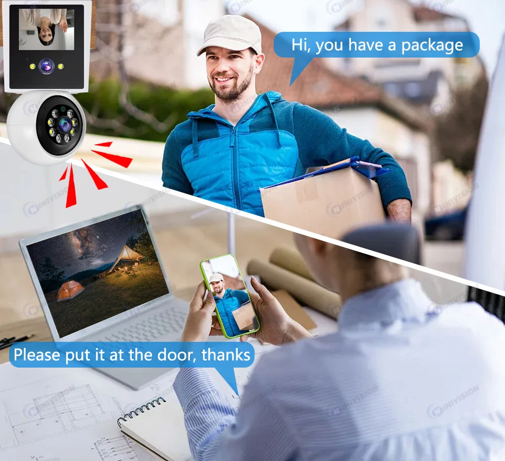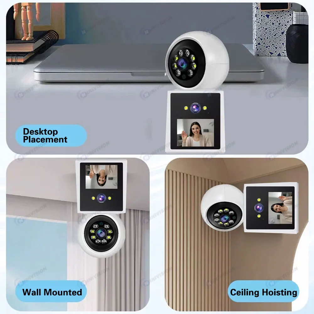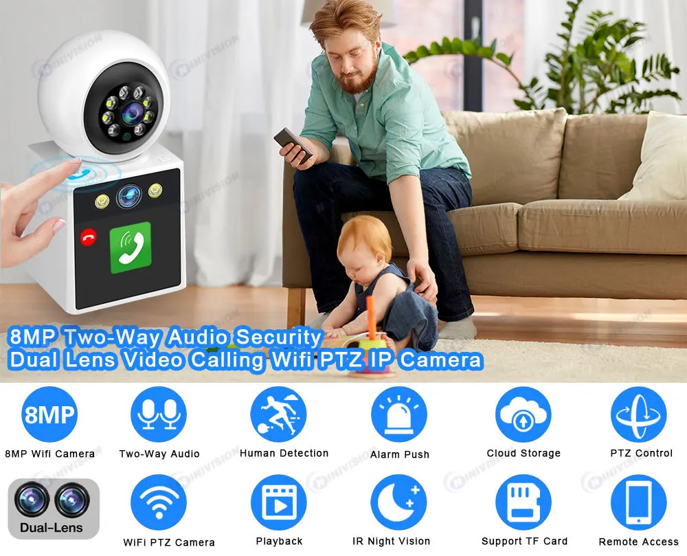 4K 8MP عدسة مزدوجة 2.4 بوصة واي فاي كاميرا مكالمات فيديو مراقب الطفل الصوت كاميرا أمن المنزل المنزل الذكية المنزل داخلي O-Kam لاسلكية PTZالميزات الرئي...