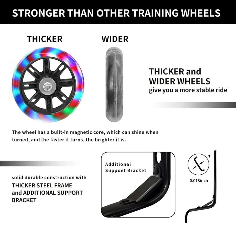 عجلة مساعدة للدراجات للأطفال ، فلاش تدريب قابل للتعديل ، عجلات كتم الصوت ، مثبت الدراجة ، متوافق للدراجات 12-20 بوصة ، 2