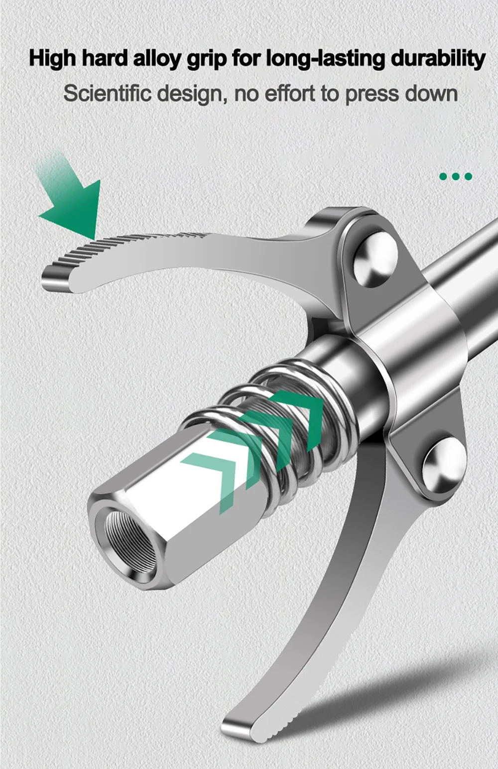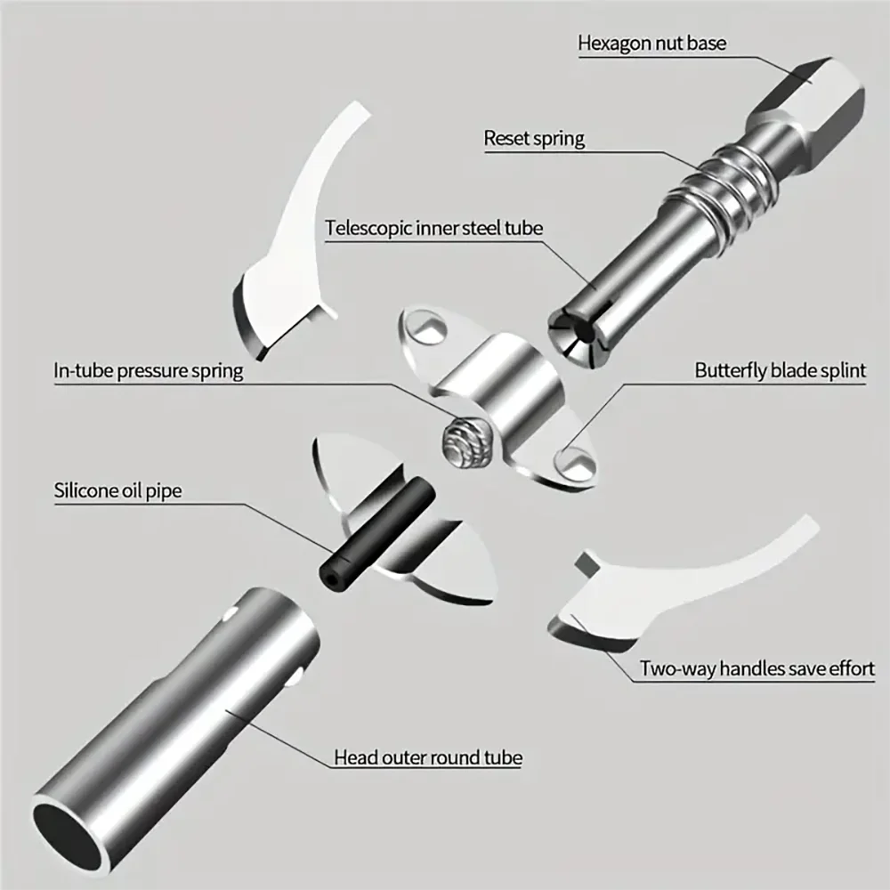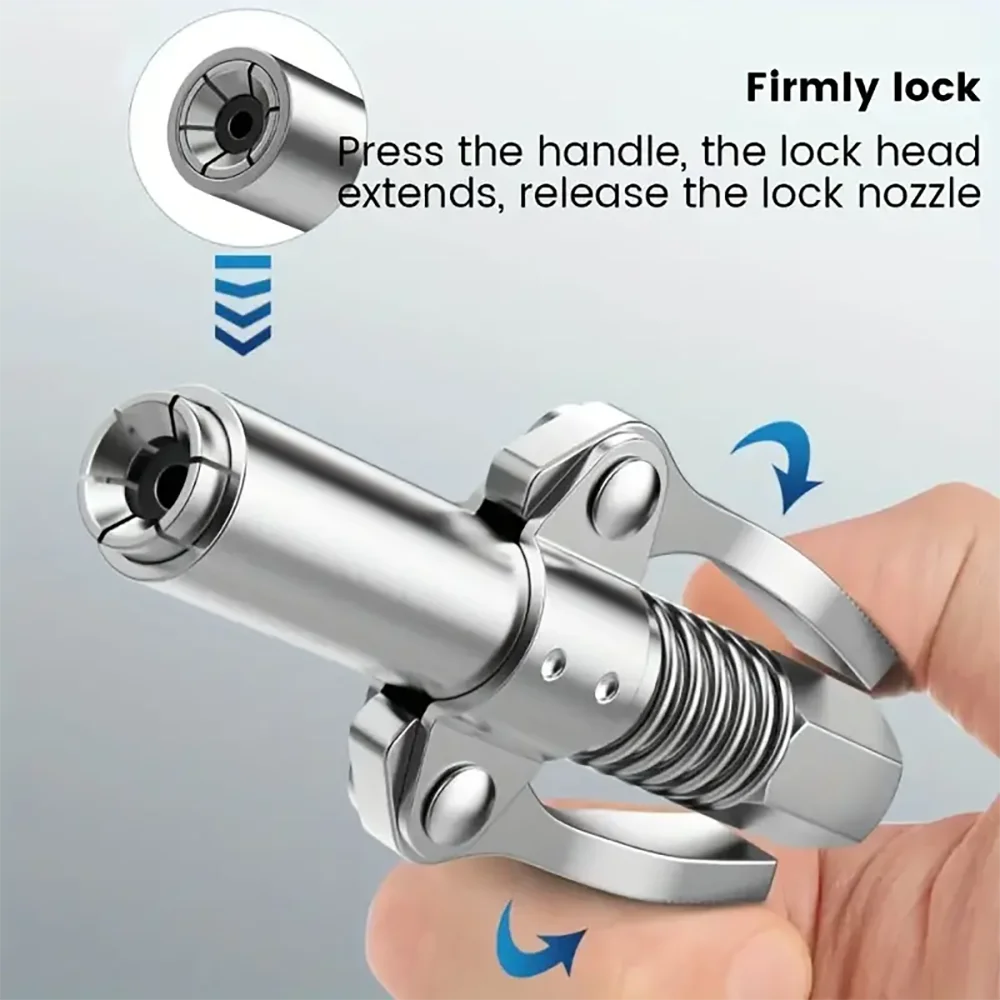 4. سهلة الاستخدام: يمكن قفل أداة الشحوم وتحريرها بسرعة وسهولة وسهولة.