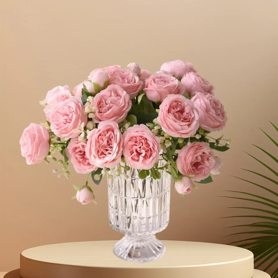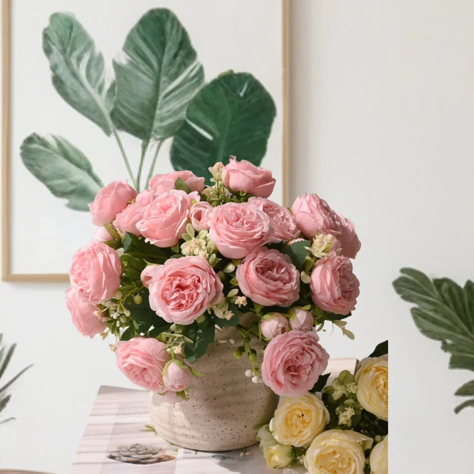 30 سنتيمتر باقة الحرير الوردي الوردي الفاوانيا زهرة اصطناعية 5 رأس كبير 4 برعم صغير العروس ديكورات منزلية للزفاف زهرة اصطناعية Rosas