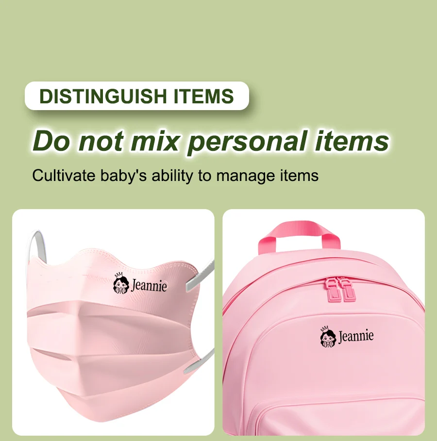 مجموعة طوابع اسم الطفل المخصصة - ختم حبر مقاوم للماء مخصص للمدرسة والسفر ورياض الأطفال، هدية لعبة متينة غير قابلة للتلاشي