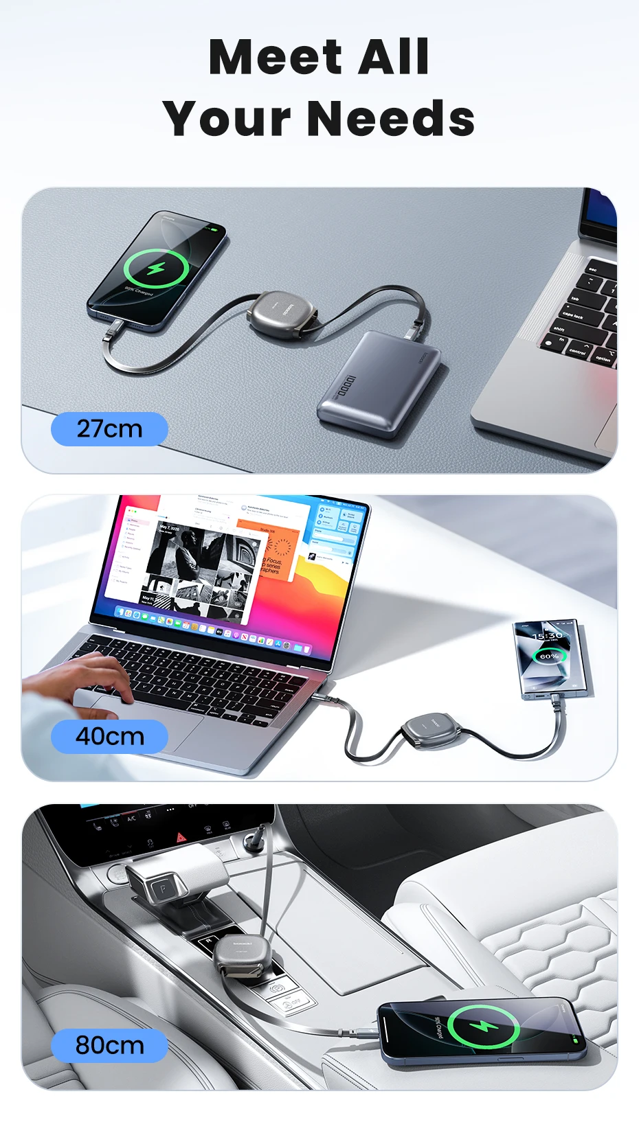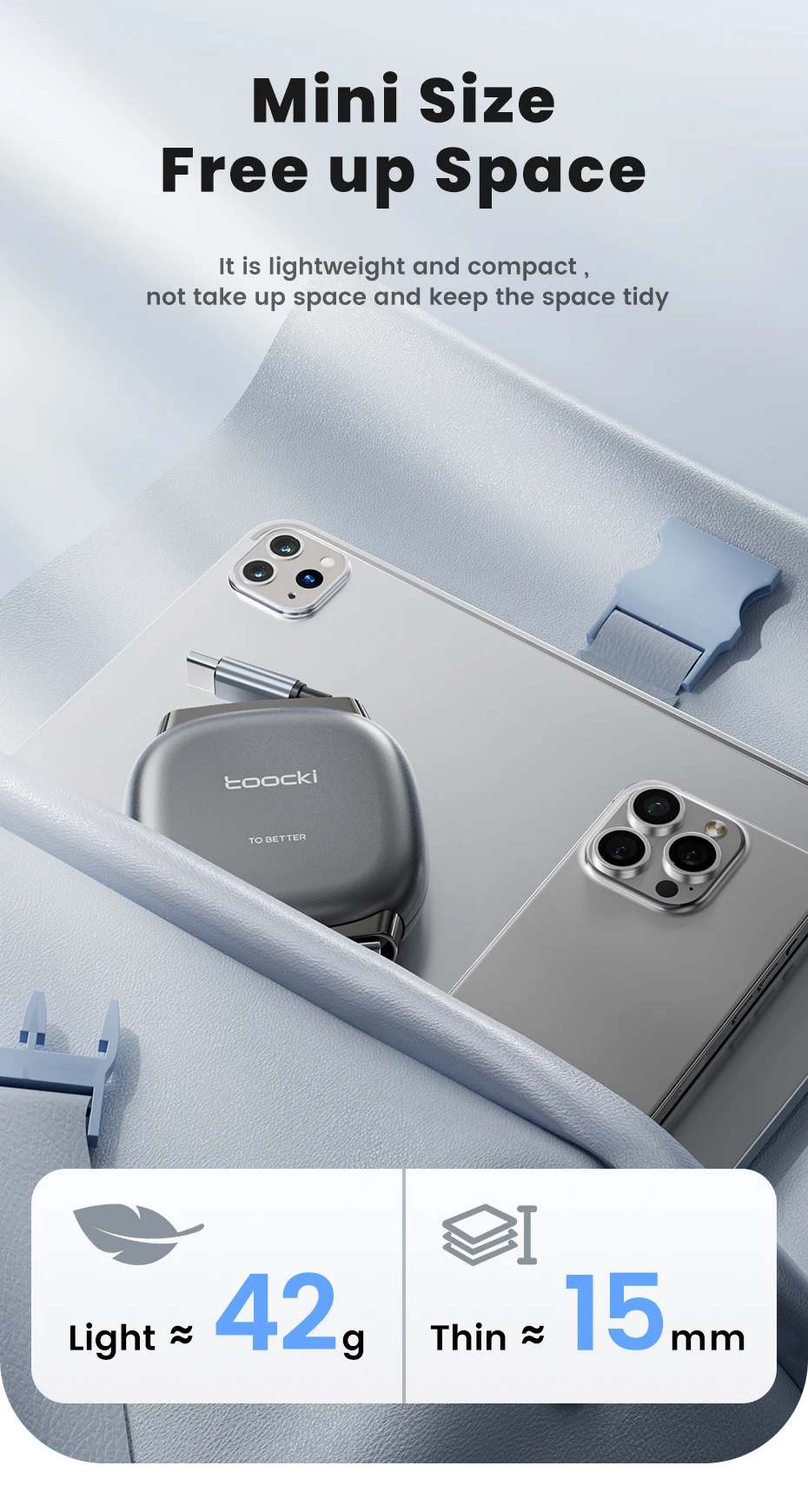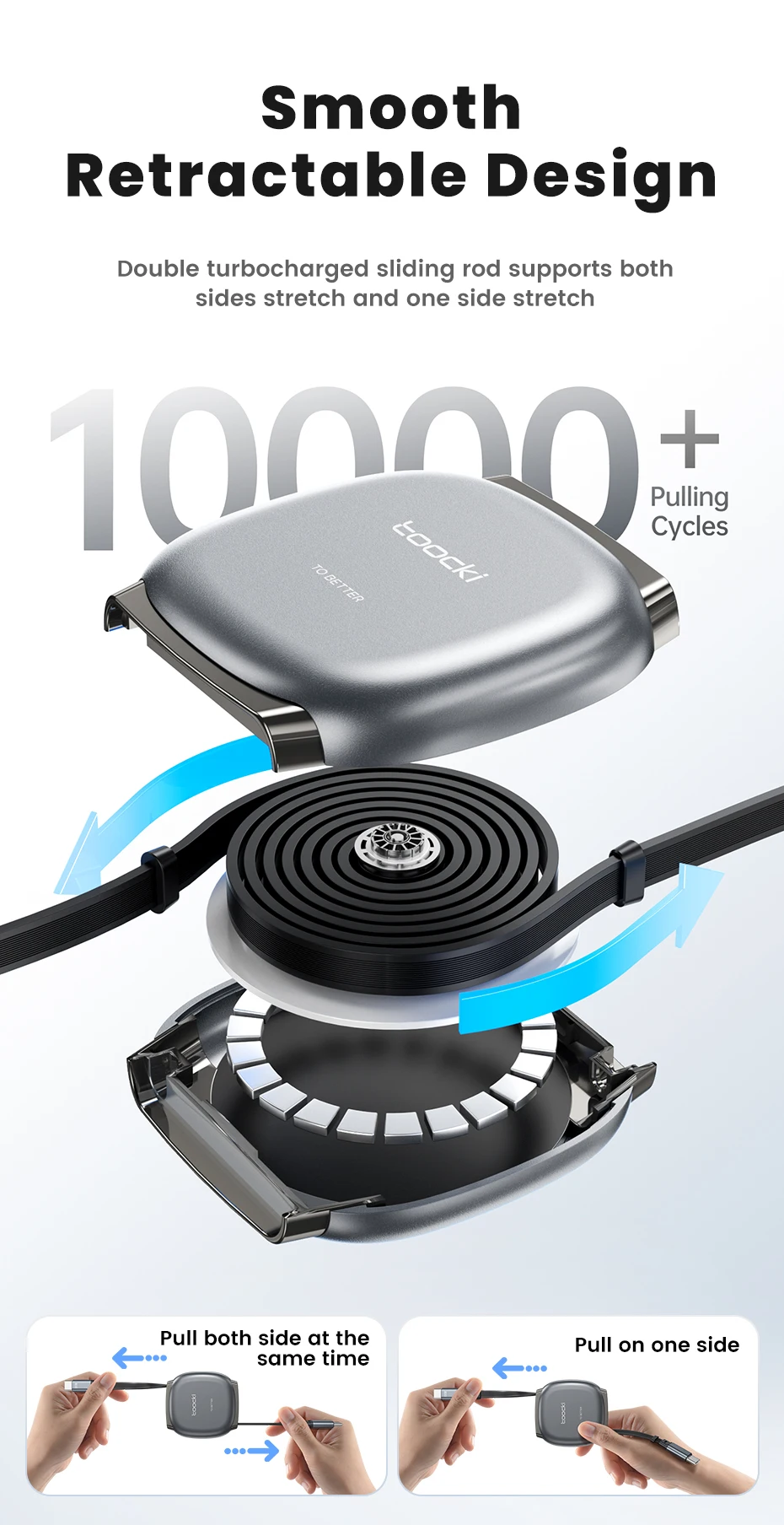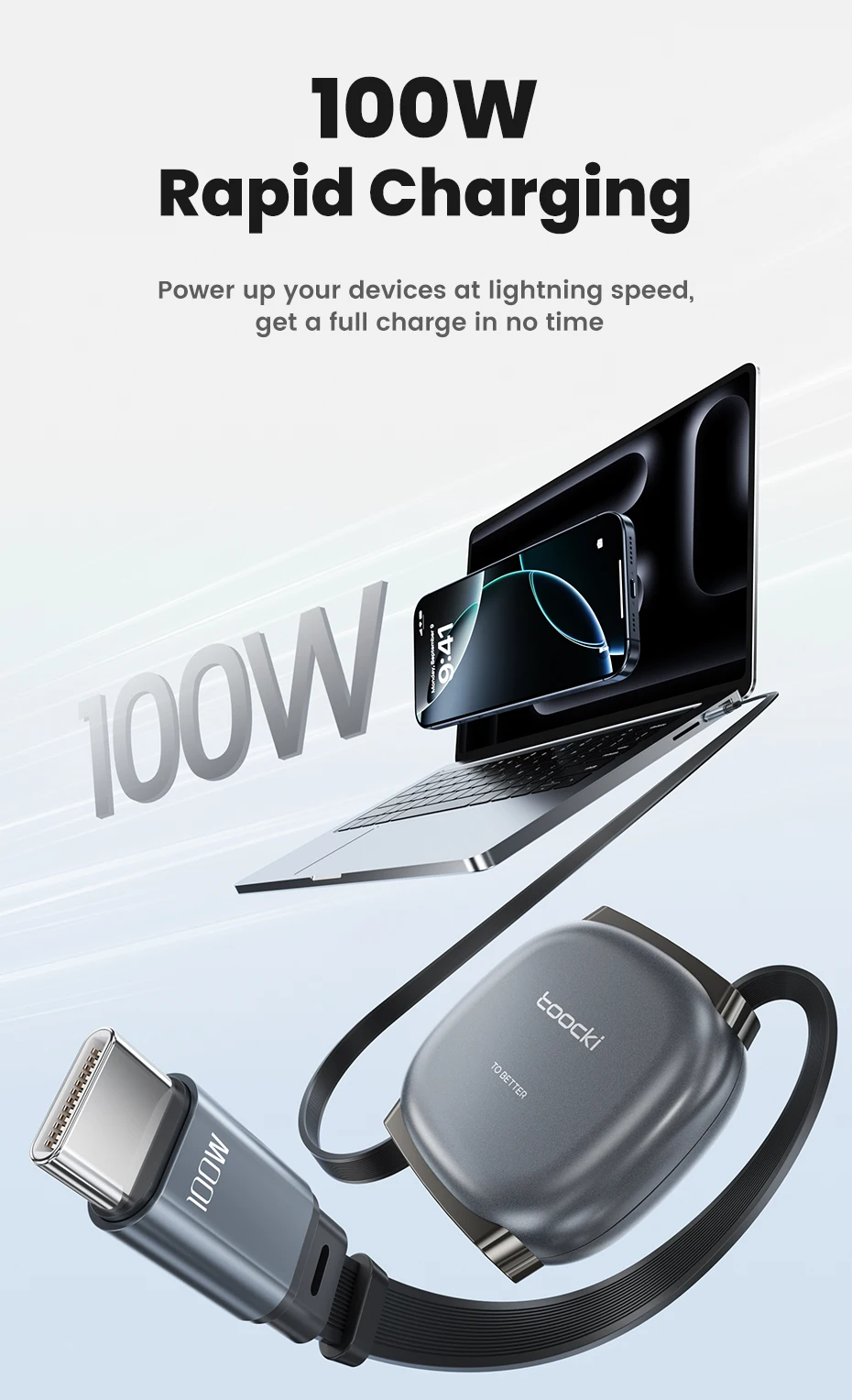 Toocki 100 واط نوع C كابل قابل للسحب آيفون 16 15 برو ماكس سامسونج سريع كابل تشيرجر حجم صغير 480Mdps كابل بيانات