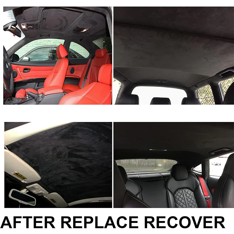 قماش بطانة سقف سقف من جلد الغزال الأسود مع دعامة إسفنجية للمفروشات الداخلية، أقمشة بديلة لإصلاح السيارات