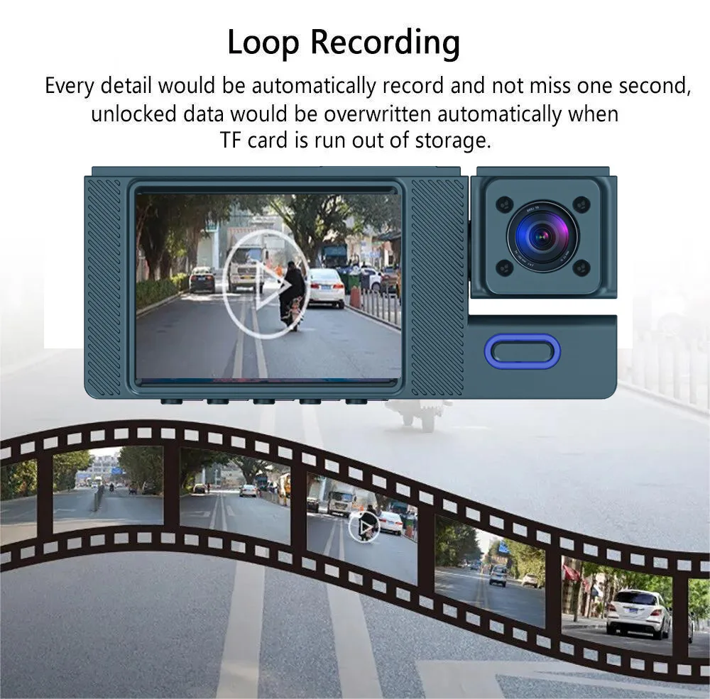 كاميرا لوحة العدادات للسيارات ، كاميرا داش للسيارة ، كاميرا أمامية وخلفية ، مسجل فيديو رقمي عالي الدقة P ، مسجل فيديو ، صندوق أسود ، 3 قنوات ، مسجل