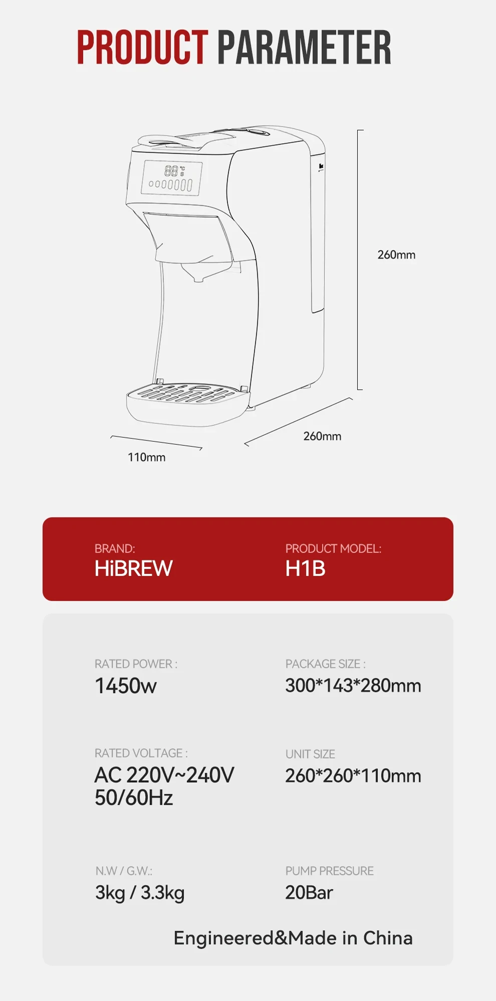 HiBREW 6in1 ماكينة صنع القهوة بالكبسولات الساخنة/الباردة متعددة اسبريسو كافتيرا كابتشينو صانع القهوة دولتشي غوستو مسحوق نسبرسو H1B