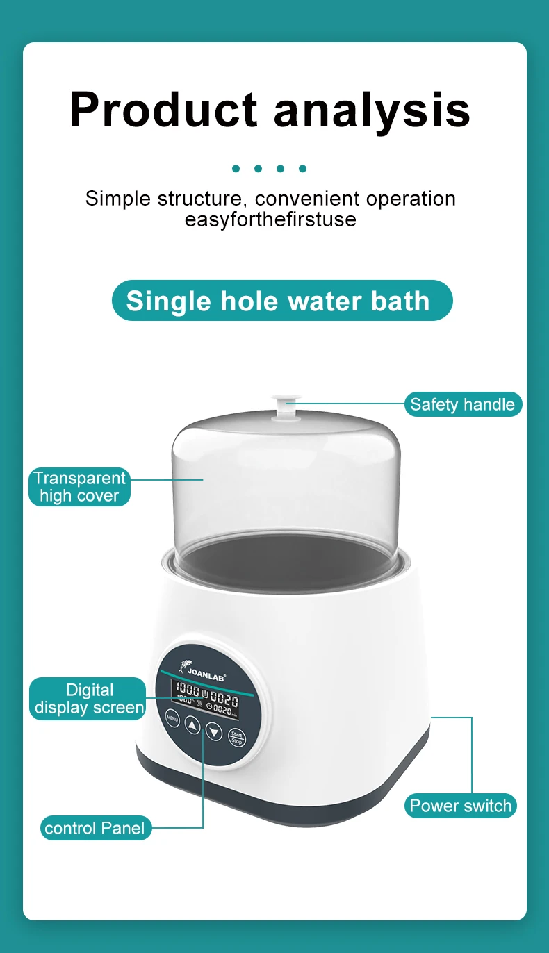 JOANLAB حمام مائي مختبري بدرجة حرارة ثابتة وشاشة رقمية وسخان مختبري وخزان ترموستات مضاد للاحتراق الجاف سعة 2 لتر 110/220 فولت WB-2S