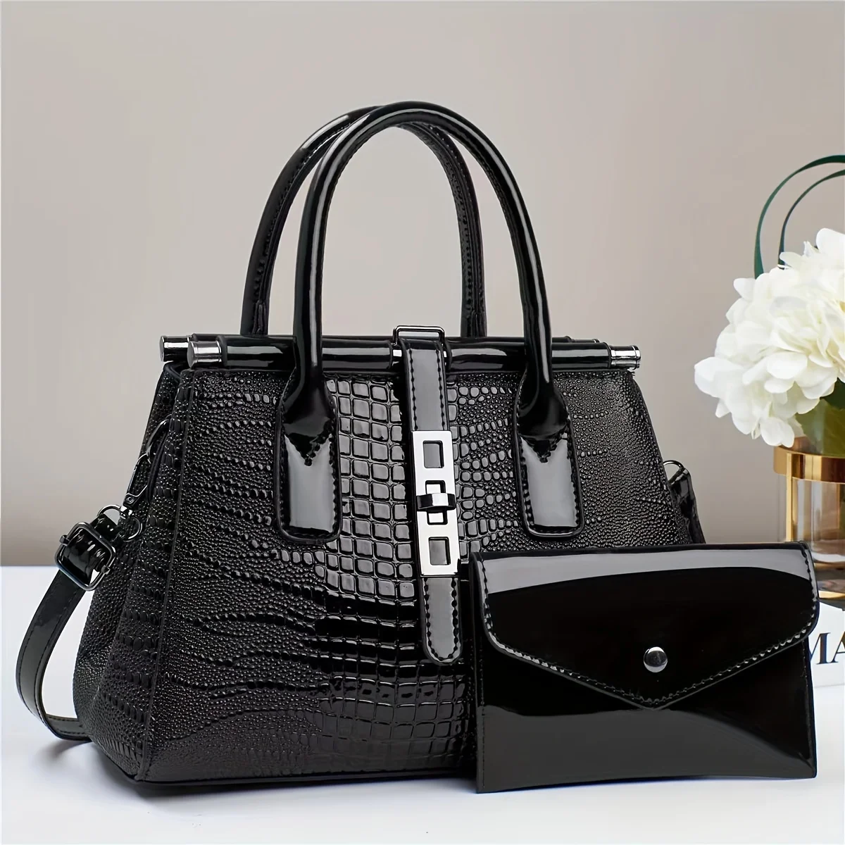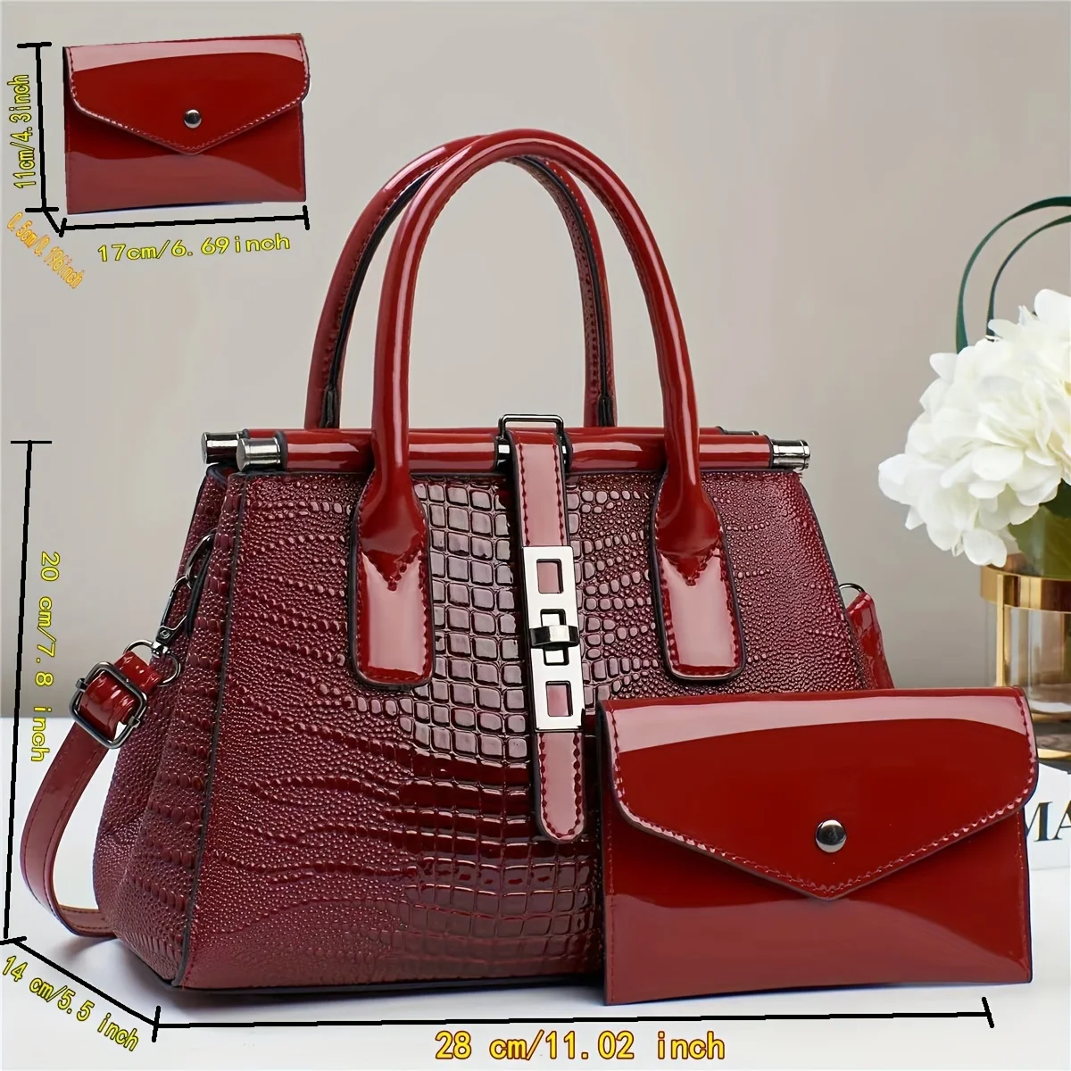 قطعتان/مجموعة حقيبة كتف وحقيبة كتف أنيقة متعددة الاستخدامات من جلد البولي يوريثان - متينة، طراز ممتاز للاستخدام اليومي والسهرات