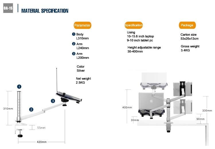 2in1 حامل الكمبيوتر المحمول والكمبيوتر اللوحي