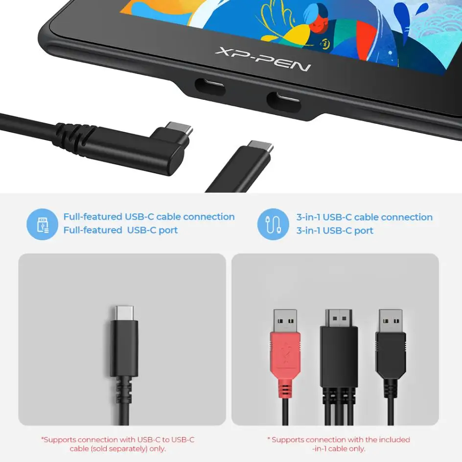 يسمح لك الكابل 3 في 1 الذي يدعم نقل إشارة HDMI بتوصيل شاشة الرسم بجهاز الكمبيوتر.