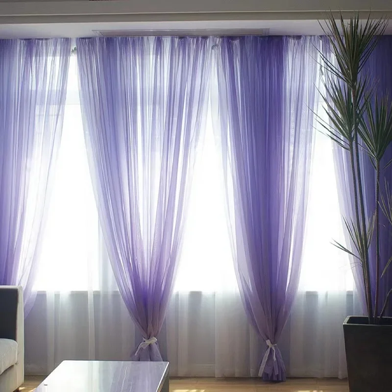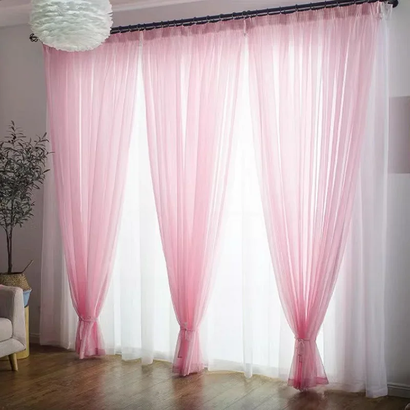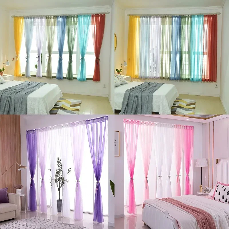 ستائر تول شفافة شبه شفافة بلون سادة وجيب قضيب ستائر ملونة لغرفة النوم وغرفة المعيشة ستائر قصيرة