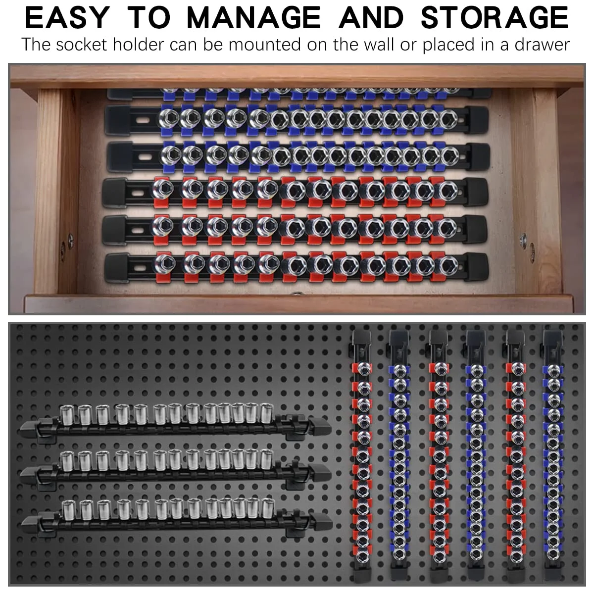 【حافظ على تنظيم المقابس الخاصة بك】 ابحث عن المقبس المناسب بسرعة وسهولة باستخدام حامل المقبس هذا، بدلاً من العثور على المقبس الذي تريده في صندوق الأدوات غير المنظم كما كان من قبل.