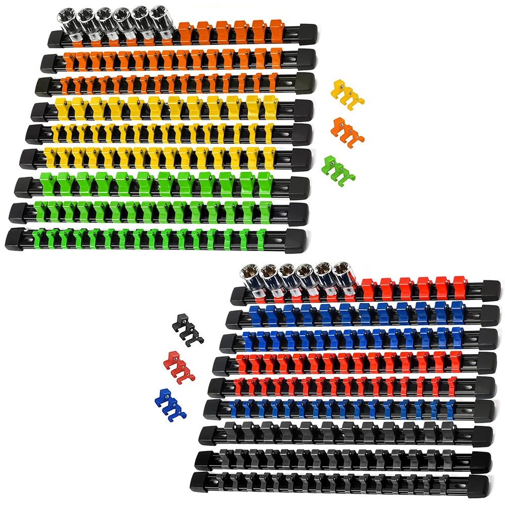 【محرك متعدد متوافق للغاية】 حامل المقبس هذا مجهز بمشابك 16 × 1/4 بوصة، ومشابك 18 × 3/8 بوصة، ومشابك 14 × 1/2 بوصة التي تحمل ما يصل إلى 48 مقبسًا.