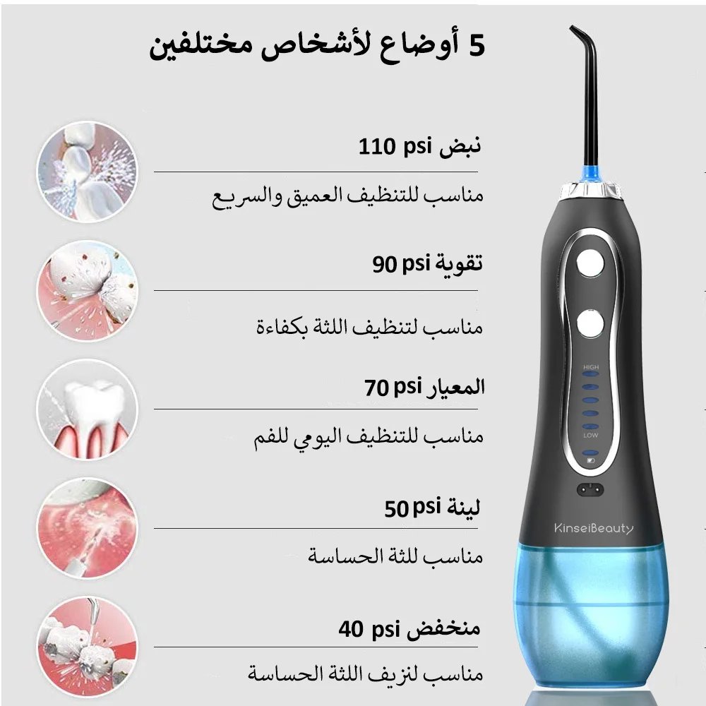 جهاز مضمة الفم من 5 نماذج, جهاز مضمة الأسنان بالماء جيت 300 مللي لمضمة الأسنان، لنظافة الأسنان، بـ 5 نفاثات