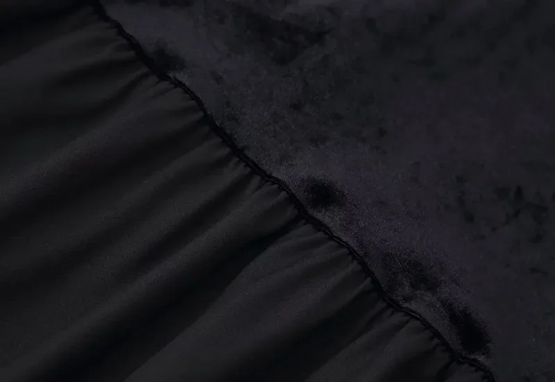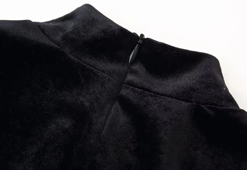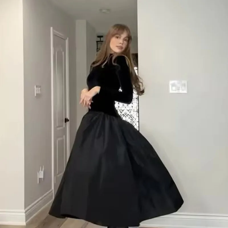 فستان ماكسي مخملي أنيق للنساء أنيق بياقة نصف عالية للحفلات المسائية 2025 فساتين سوداء جديدة بأكمام طويلة