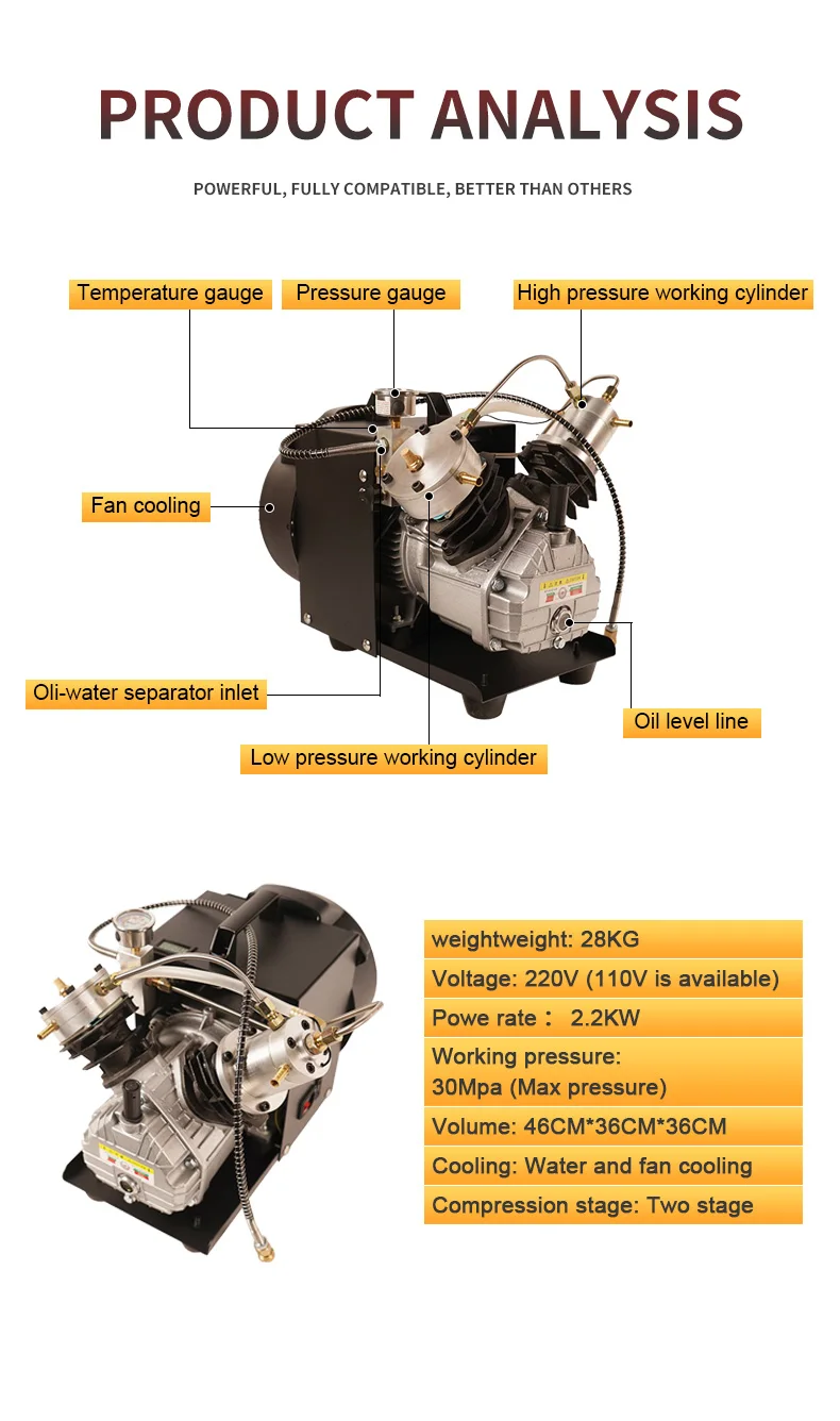 ①TXEDM041 is mini Two Stage Cylinder Compressor,Protable Compressor,Easy to carrying.,working pressure 300bar/4500psi/30mpa, High pressure ...