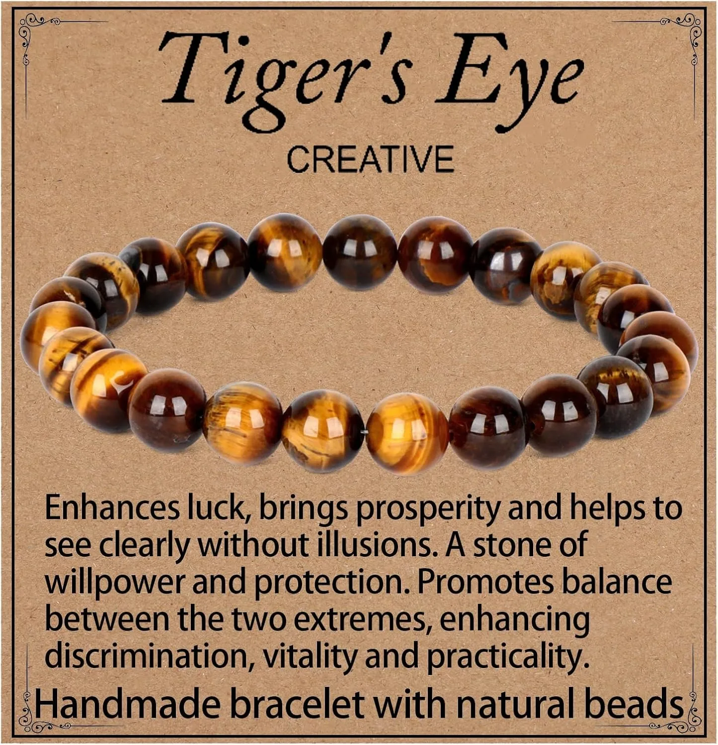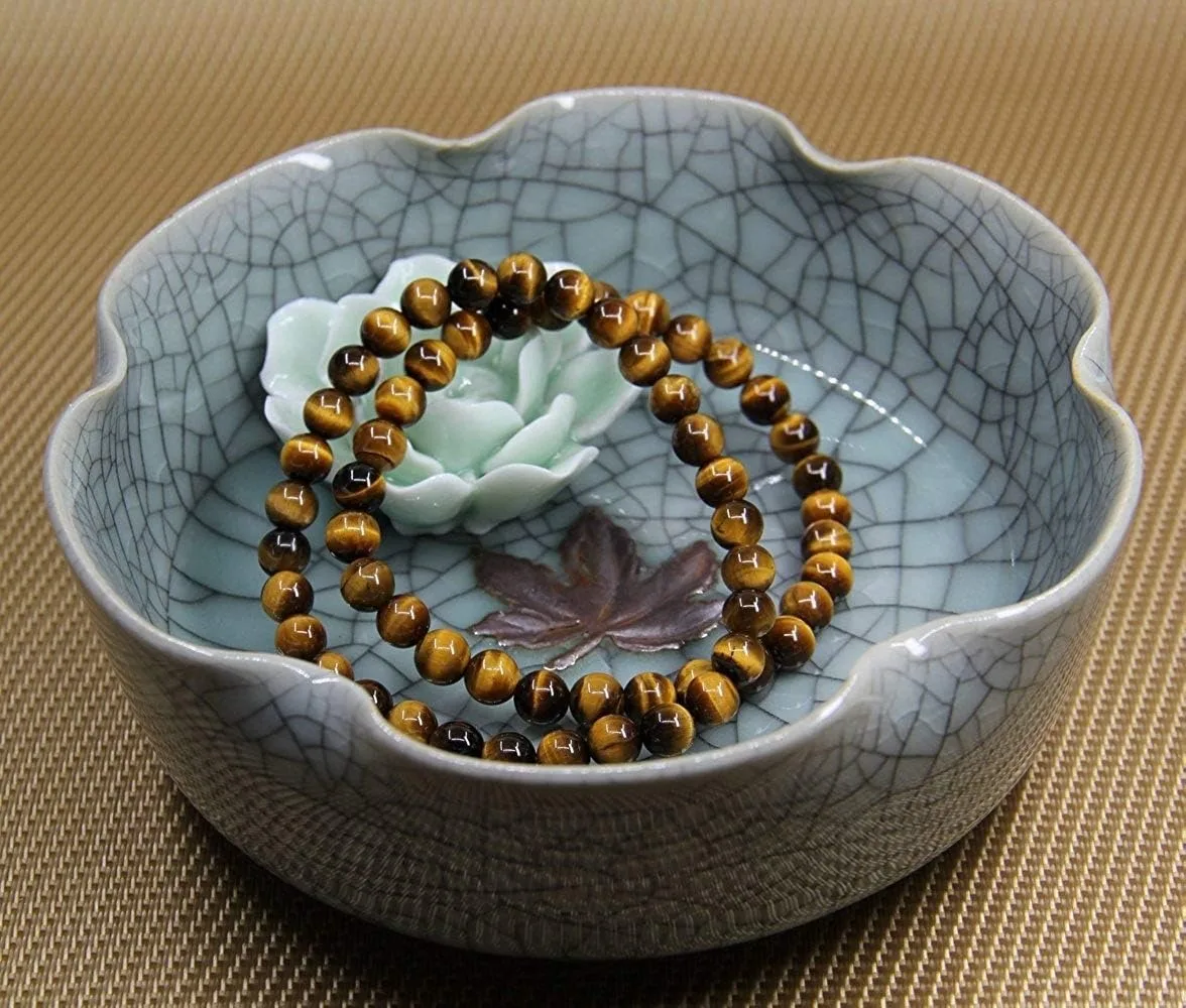 {الغنية والحظ} سوار عين النمر مصنوع يدويًا من الأحجار الكريمة الطبيعية سوار مرن من حجر الكريستال والخرز مجوهرات هدايا للرجال والنساء