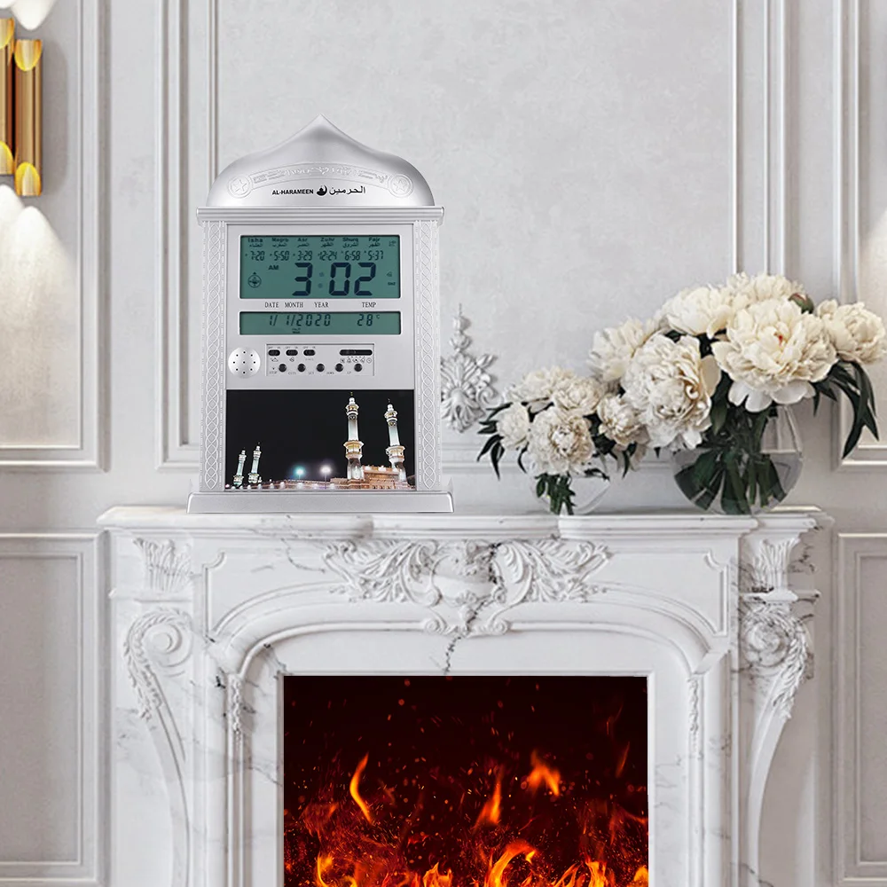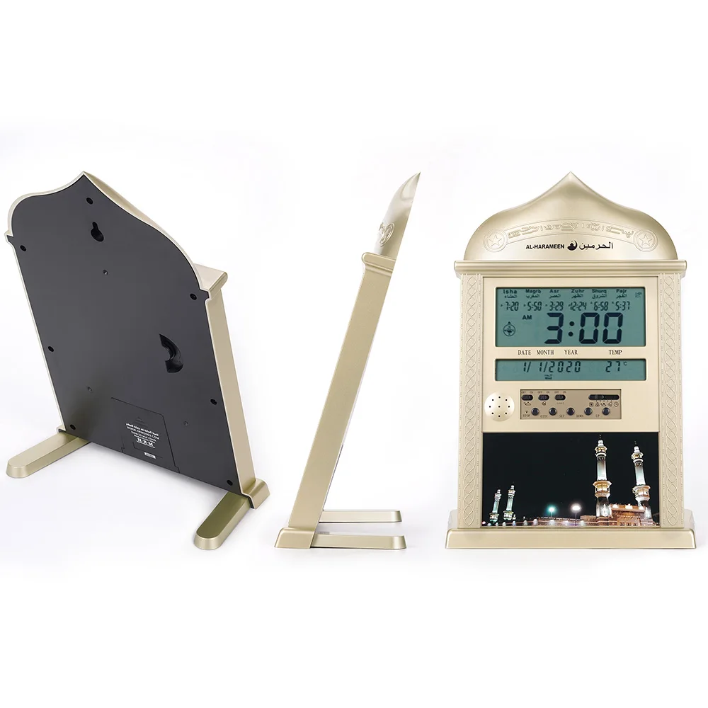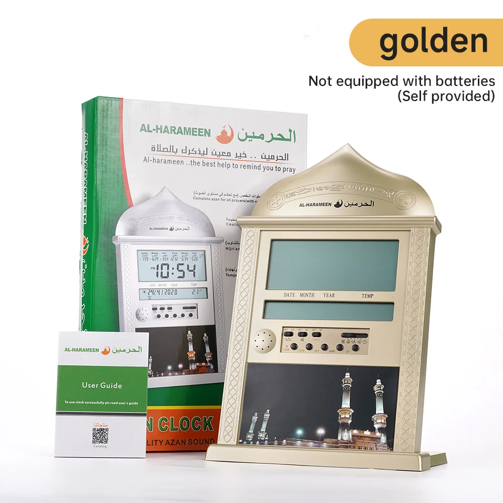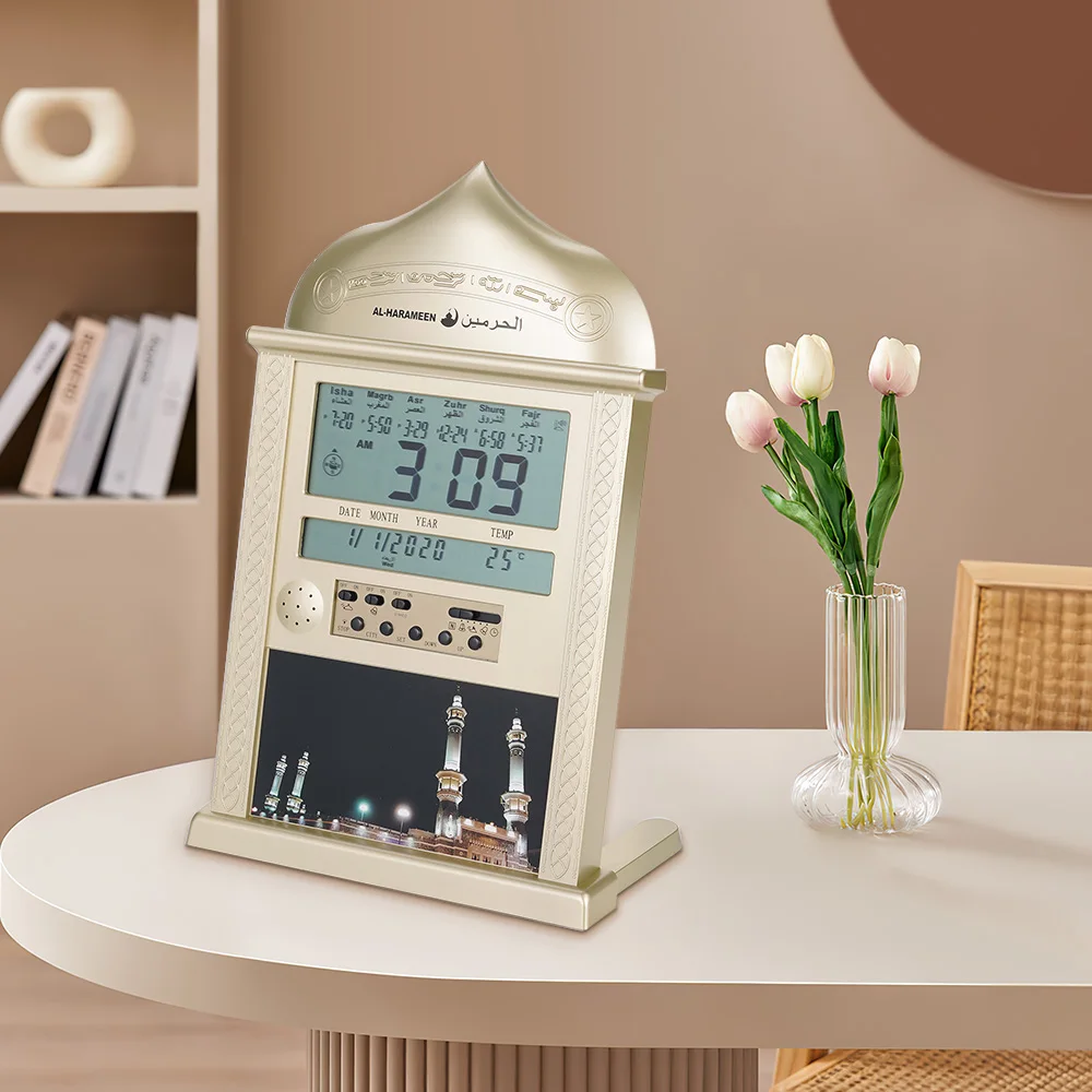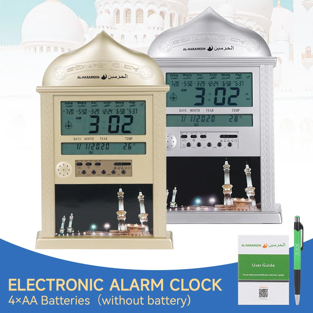 ساعة منبه صلاة إسلامية بدون بطاريات ، هدية رمضان مع تذكير بوقت الأذان ، تعمل بالبطارية ، ذهبية أو فضة ، 4 × 5 ، 1