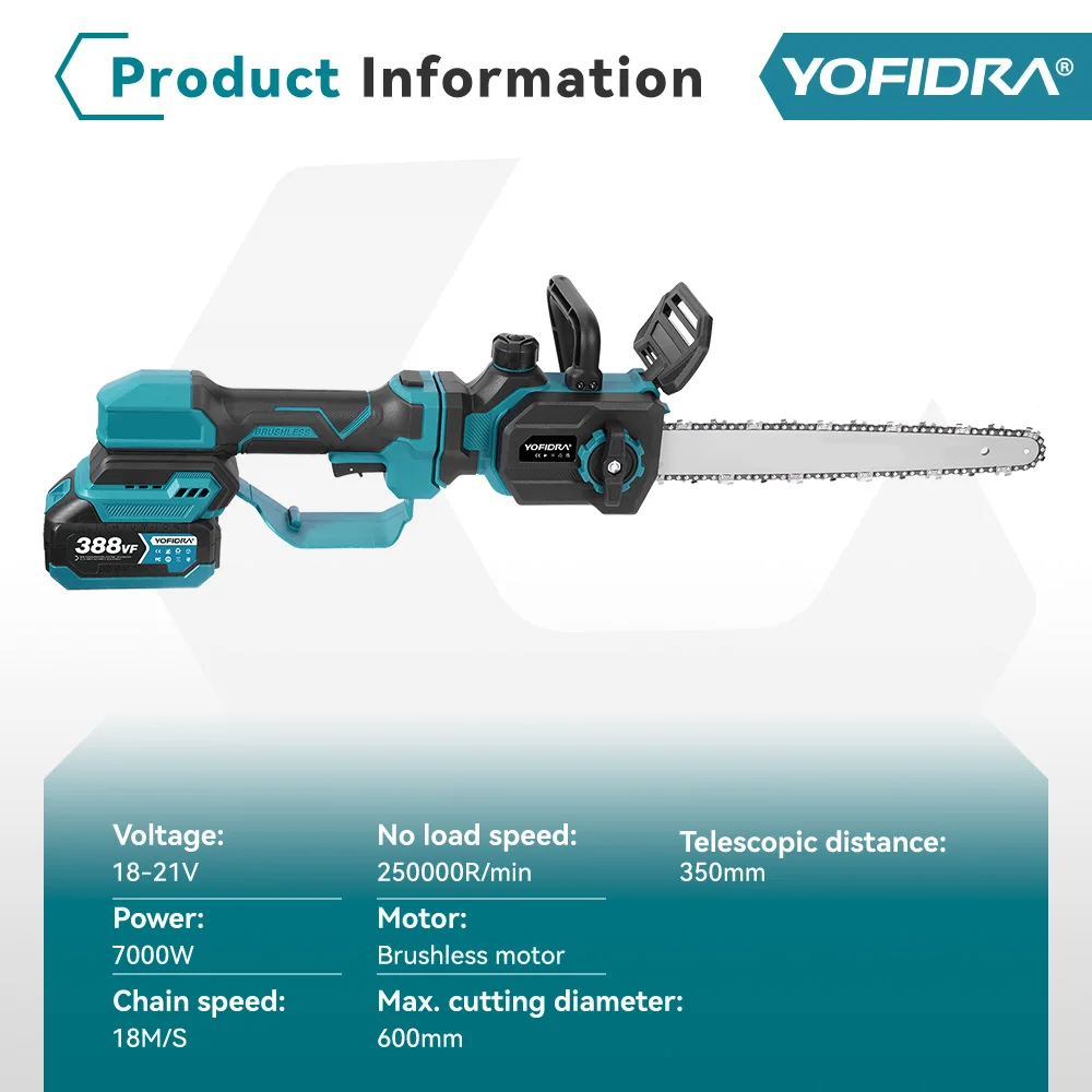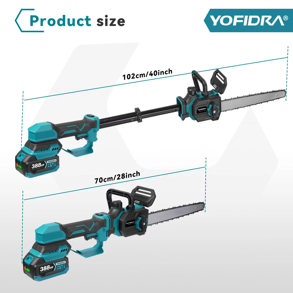 YOFIDRA 12 بوصة 7000 واط فرش تلسكوب القطب الكهربائية بالمنشار 2 في 1 منشار فرع عالي حديقة تشذيب أداة السلطة لبطارية 18 فولتالمواصفات...