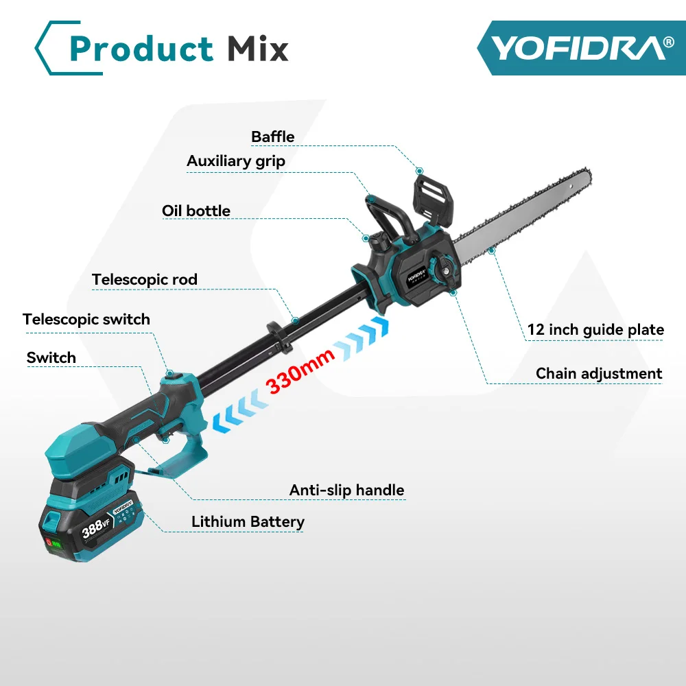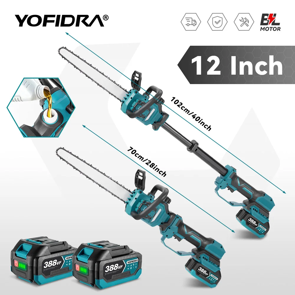 YOFIDRA فرش 12 بوصة تصغير القطب منشار كهربائي 7000 واط عالية فرع المنشار حديقة تشذيب أداة ل ماكيتا 18 فولت بطارية دبوس