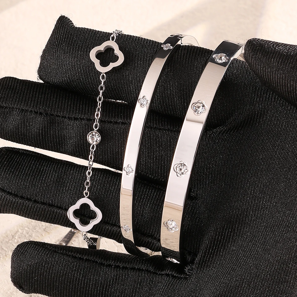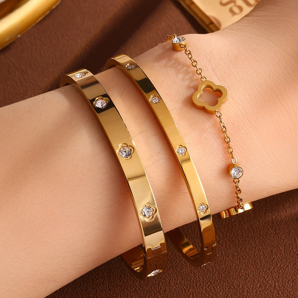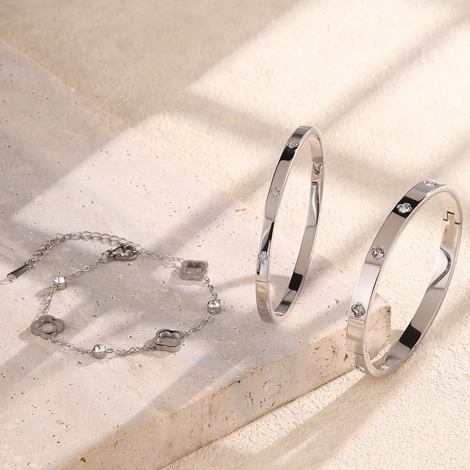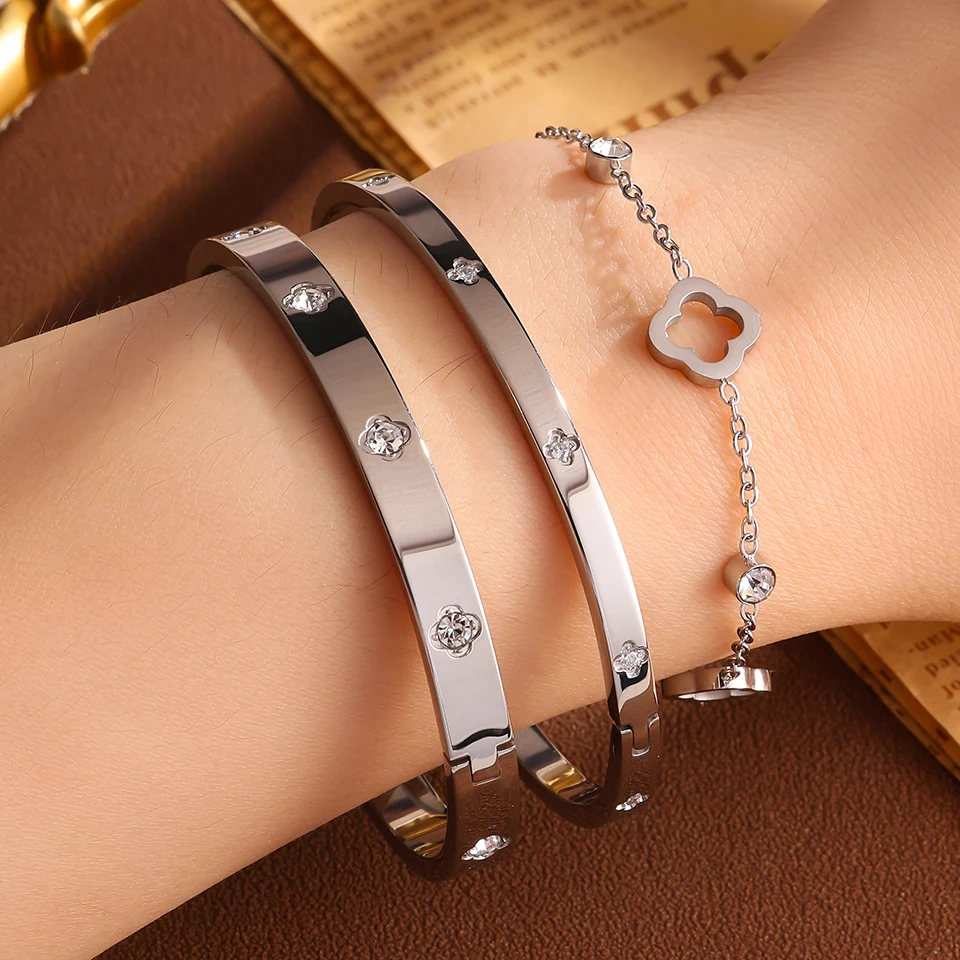 ZAKOL 3 قطعة الفولاذ المقاوم للصدأ مكدسة سوار أساور للنساء الرجال زوجين رائعة الزركون مطعمة هدايا عيد الحب مجوهرات