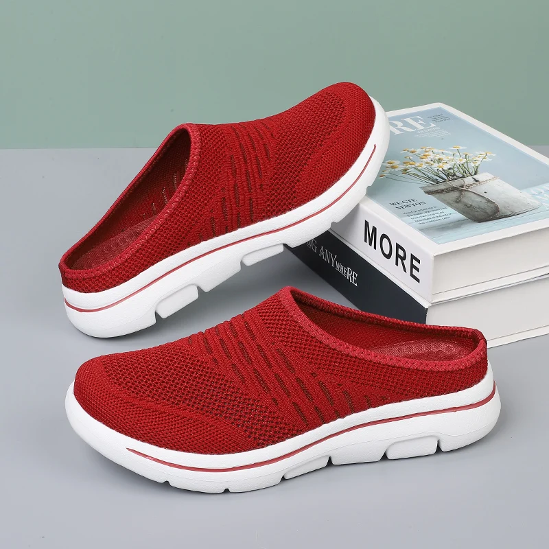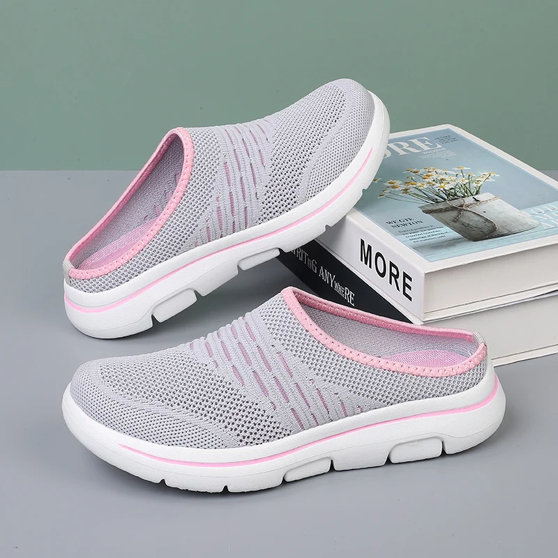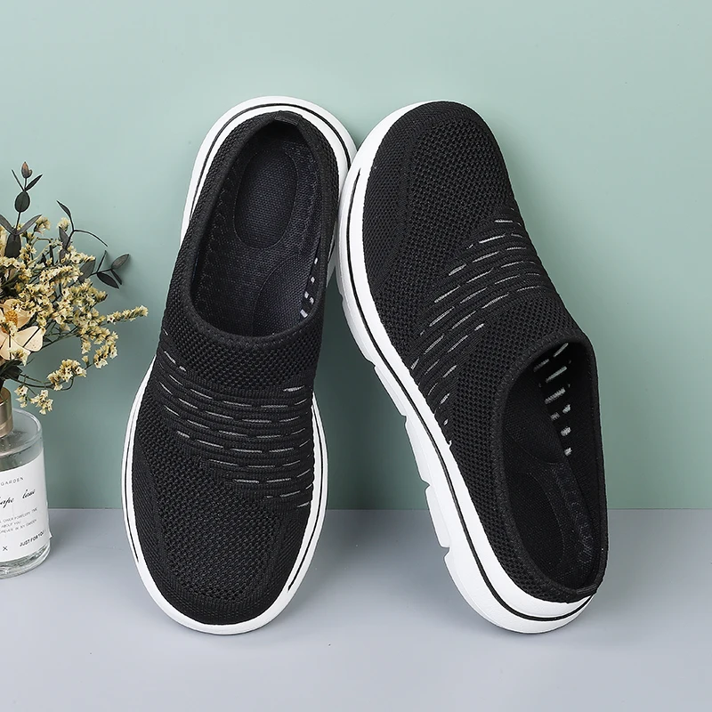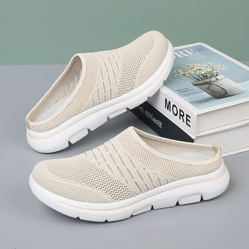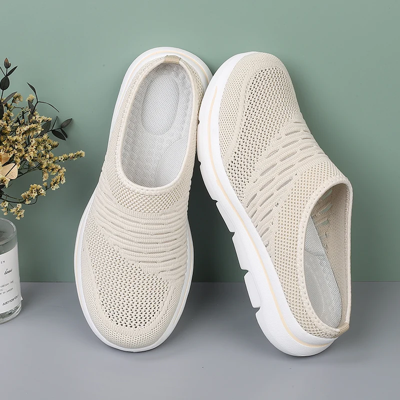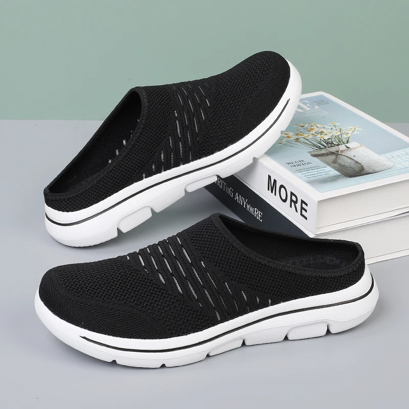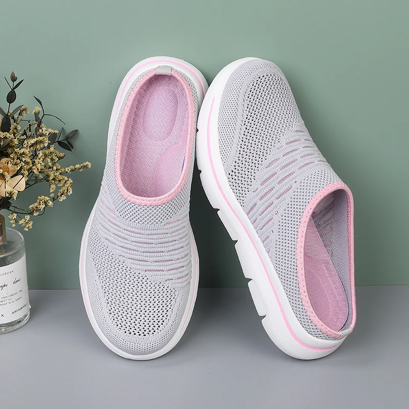 شبكة صيفية مسطحة سهلة الارتداء بنصف أحذية نسائية شباشب مسطحة قابلة للتنفس كاجوال خفيفة الوزن ومريحة