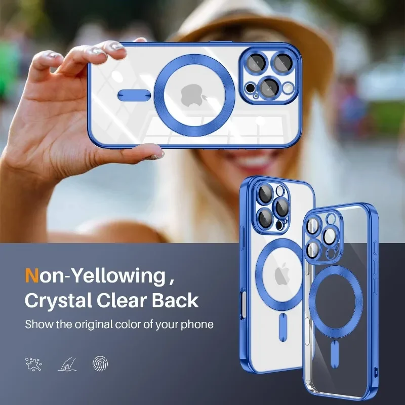 حافظة مغناطيسية رفيعة فاخرة مضادة للأصفر مصممة لهاتف آيفون 16 15 14 Plus 13 12 11 Pro Max لغطاء الشحن اللاسلكي MagSafe